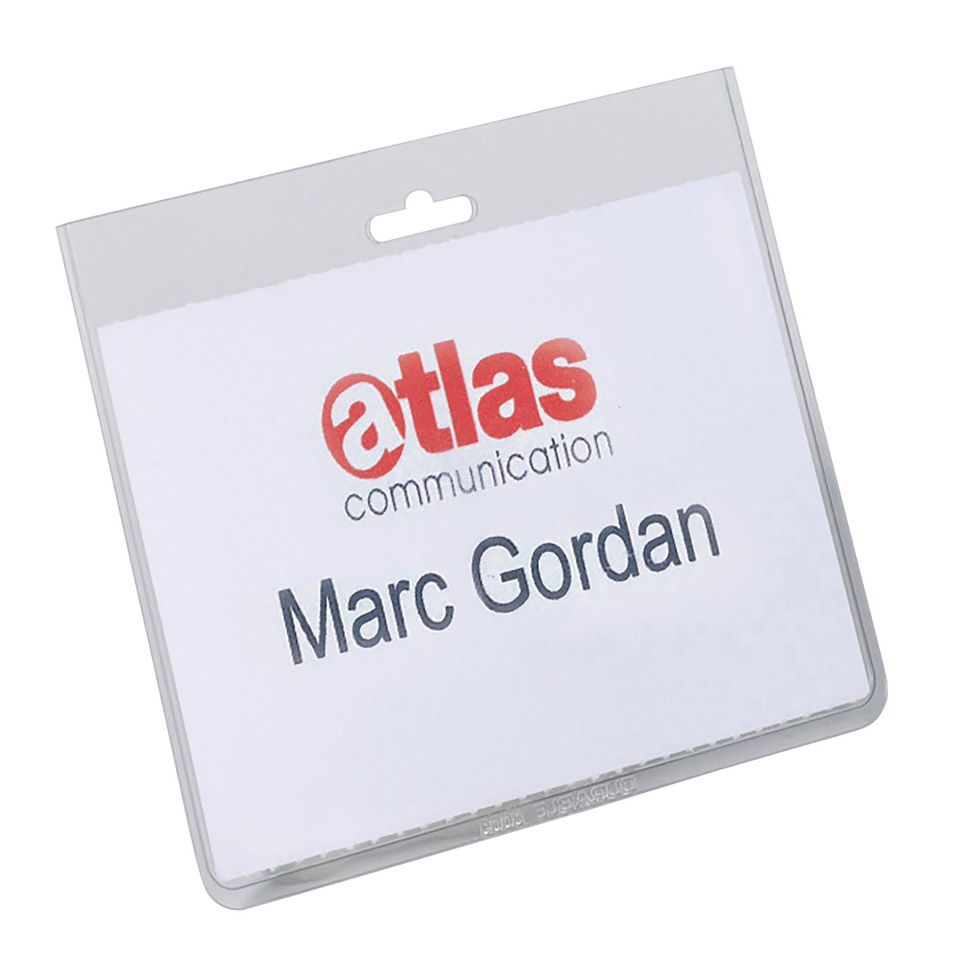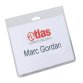 Portabadge chiuso: a cordoncino agganciato il cartoncino inserito resta in posizione senza possibilità di fuoriuscita accidentale.