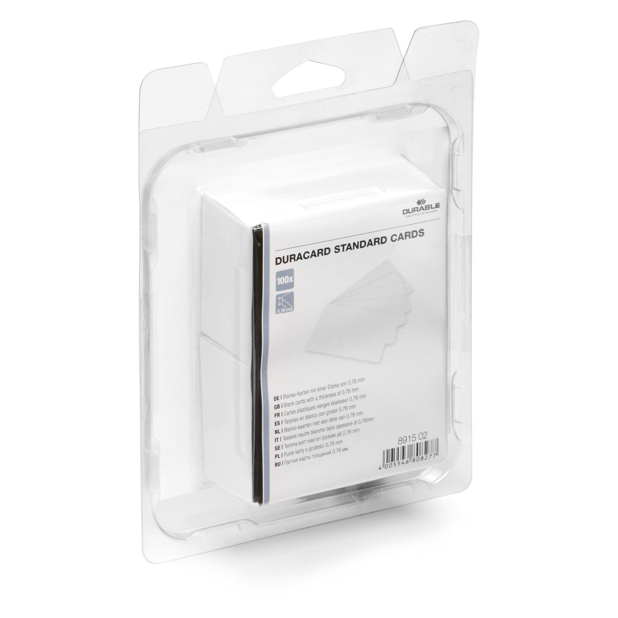 Set da 100 tessere Durable Duracard colore bianco.