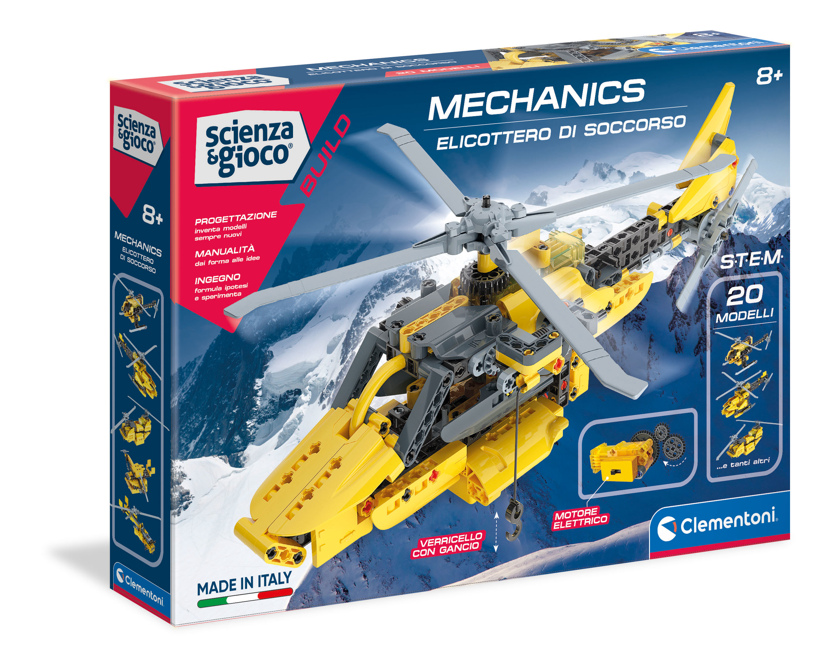 La voglia di costruire prende il volo per farti vivere incredibili avventure a bordo dell'elicottero di soccorso di Scienza & Gioco Tecnologica!Un nuovo incredibile kit con oltre 250 componenti per realizzare un elicottero motorizzato e altri 20 modelli e applicazioni tecniche.Tanti componenti quali: vite senza fine, giunto cardanico, scatola portasatelliti, ruote dentate, pale, rotori, per avvicinarsi al mondo della meccanica in modo semplice e divertente.E con il verricello, da attivare manualmente, la missione di salvataggio è compiuta!Segui le istruzioni sul manuale illustrato, ricco di approfondimenti tecnico scientifici sulla dinamica del volo, o scarica l'APP gratuita con istruzioni 3D interattive per tutti i modelli.