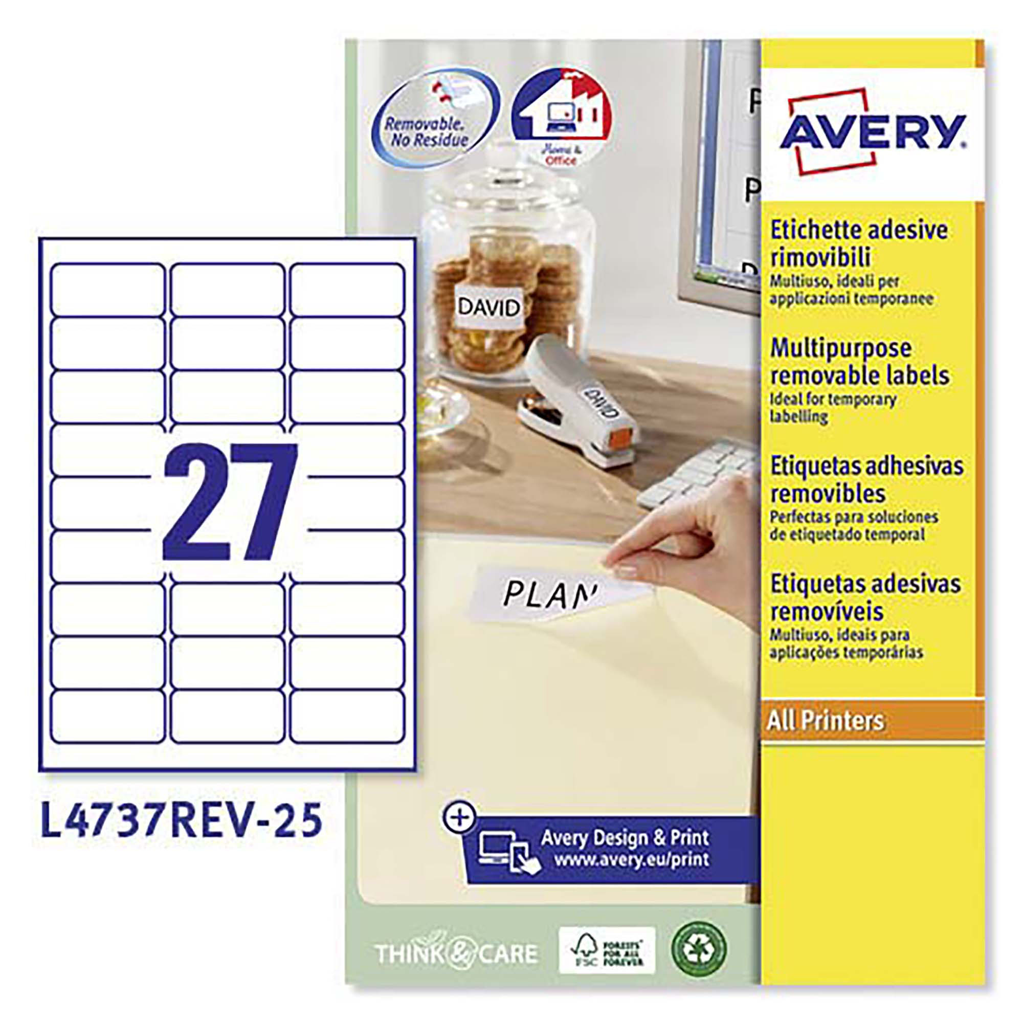 Descrizione dettagliataEtichette autoadesive rimovibili Avery in carta riciclata bianca 63,5 x 29,6 27 etich/foglio 675 etich/pacco
