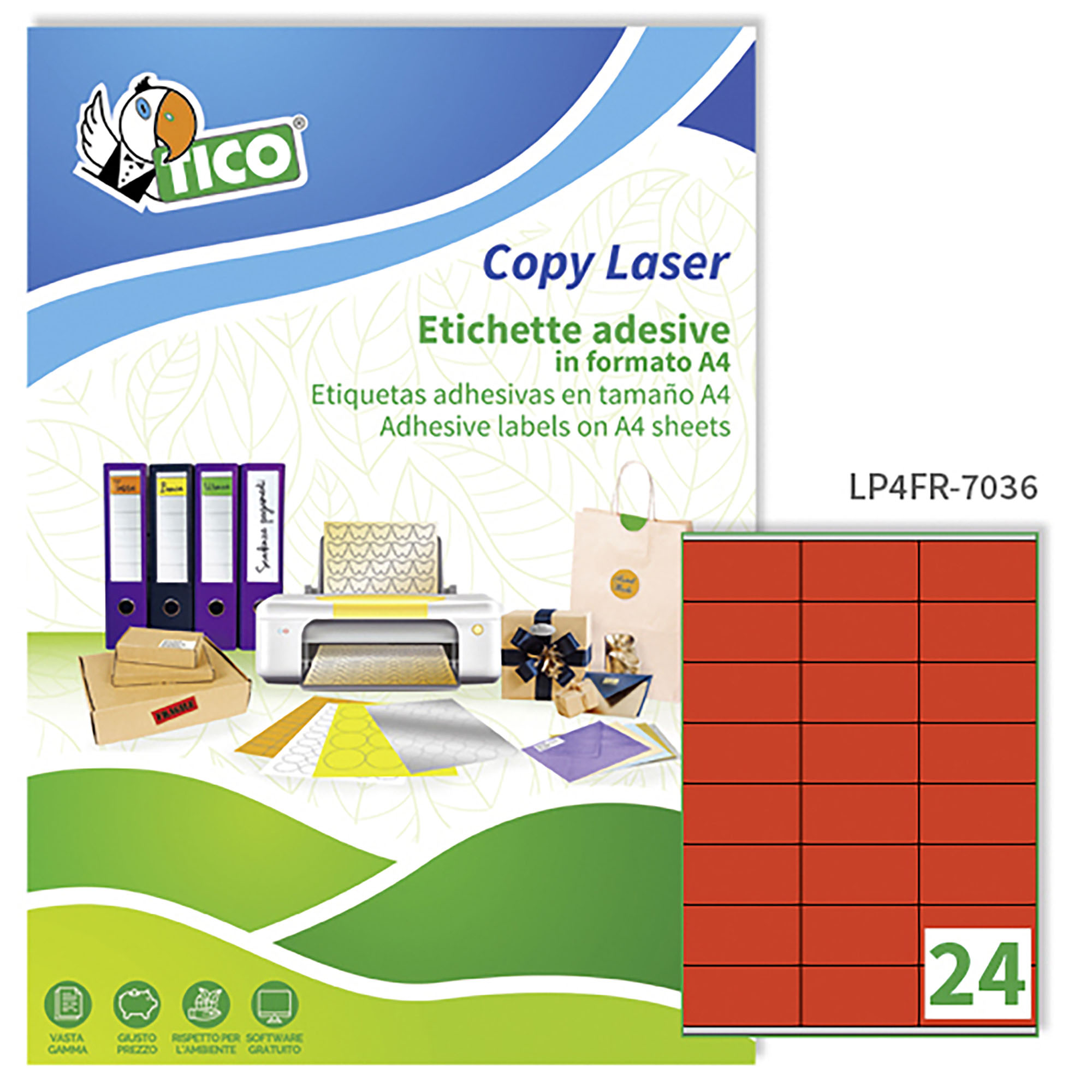 Etichette in carta bianca opaca o fluorescente per stampanti Laser/ Inkjet/ Copiatrici con collante permanente.