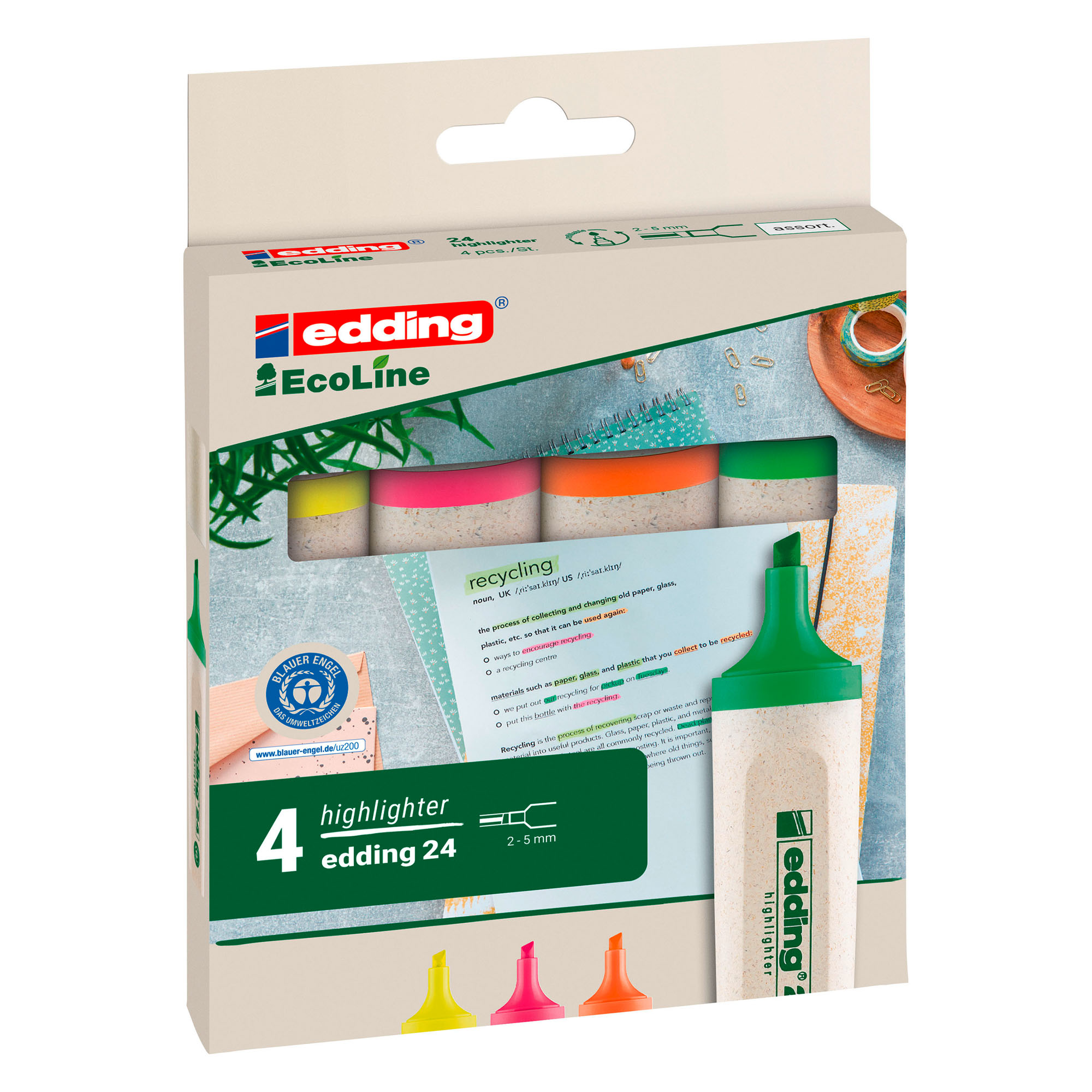 Descrizione dettagliataEvidenziatore ecologico. Inchiostro a base d’acqua dai colori brillanti, adatto per l’uso su stampe ink-jet. Realizzata al 97% con materiale riciclato.Punta: Scalpello.Confezione da 4 pezzi.Colori: giallo, rosa, arancione e verde.