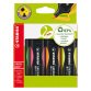 La confezione in una scatola di cartone realizzata quasi interamente con carta riciclata include una scelta di 4 colori vivaci.