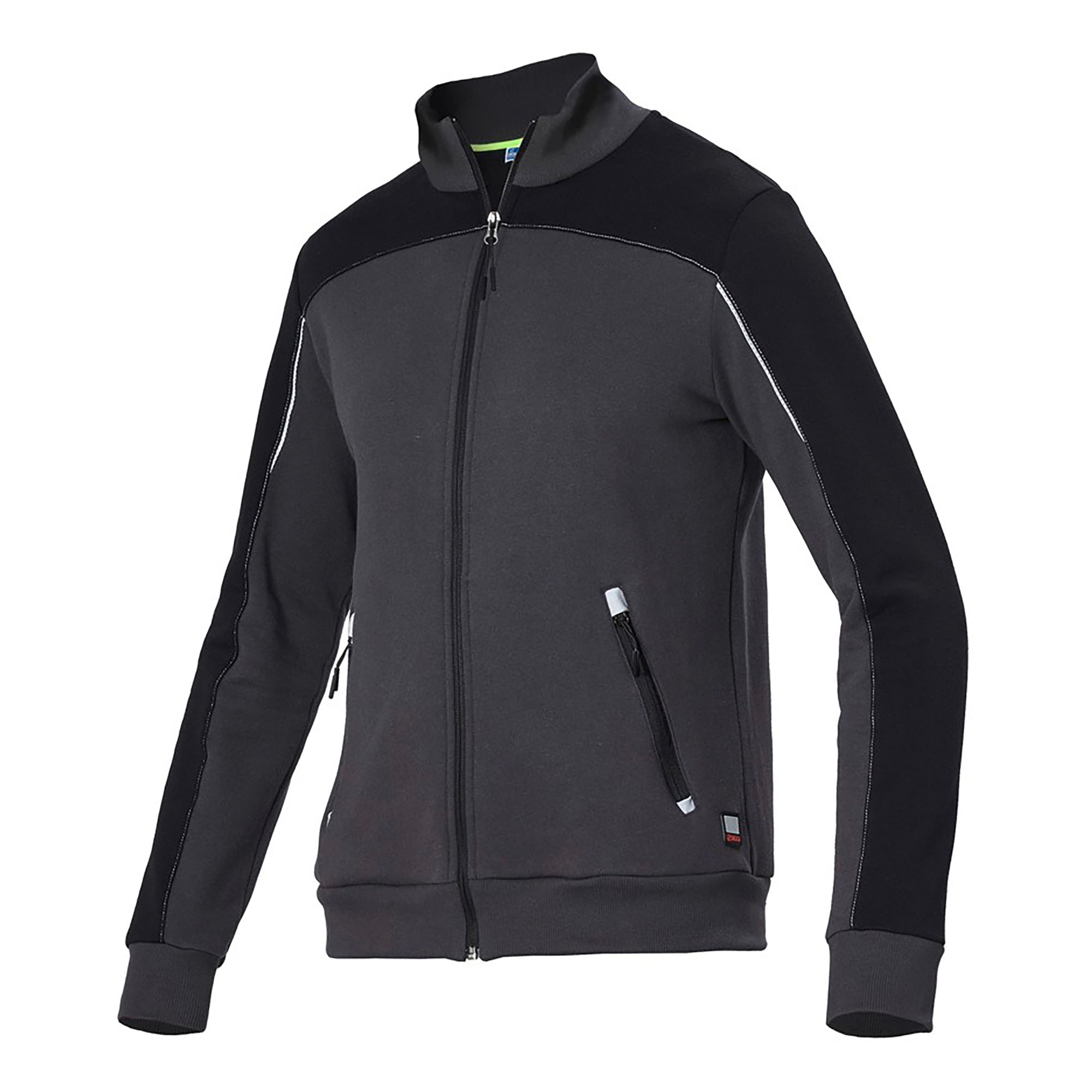 Descrizione dettagliataFelpa Sigma 80% cotone 20% poliestere.CaratteristicheApertura con zip rovesciataCollo, polsi e fondo capo in costinaFettuccia parasudore interno collo in contrastoTessuto in contrasto su carrè davanti, dietro e inserti manicheCarrè davanti obliquoCarrè dietroTasche chiuse con zip rovesciateInserti garage in reflex elasticizzato su apertura taschePiping reflex traforato su taglio maniche davanti e carrè dietroImpunture in contrasto su carrè davanti, dietro e manicheTiretti con grip per zip