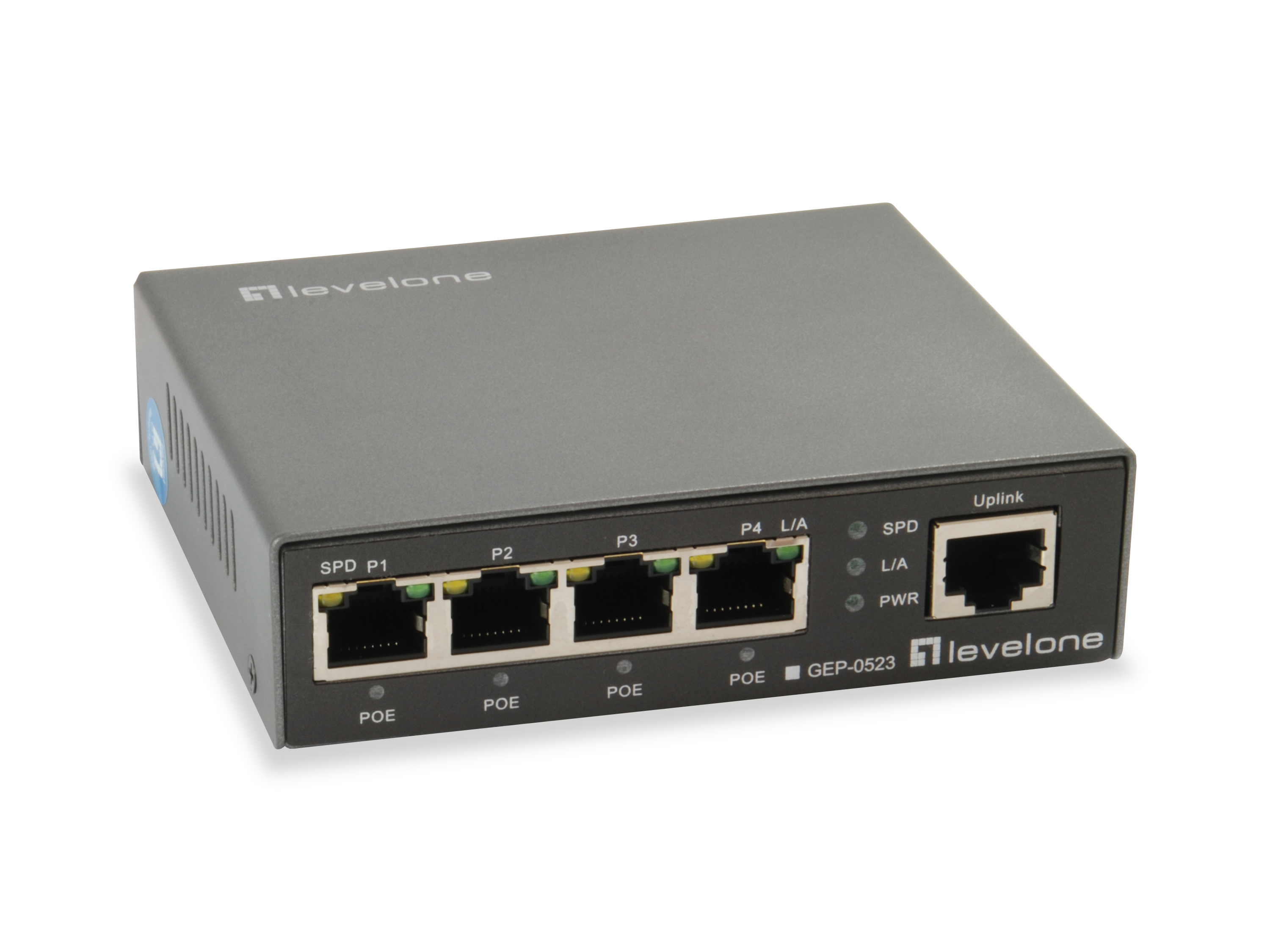 LevelOne GEP-0523. Tipo di porte RJ-45: Gigabit Ethernet (10/100/1000), Quantità di porte RJ-45: 5. Dimensioni tavola MAC: 8000 voci. Standard di rete: IEEE 802.3, IEEE 802.3ab, IEEE 802.3af, IEEE 802.3at, IEEE 802.3u, IEEE 802.3x. Voltaggio input DC: 52 - 57 V. Supporto Power over Ethernet (PoE)