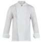 Giacca da cuoco a manica lunga con abbottonatura doppio petto, collo e polsi arrotondati, porta penne sulla manica sinistra. Vestibilità Slim Fit e bottoni estraibili sulla pettorina davanti. Realizzata in tessuto 100% cotone nella variante bianca. Ha la variante manica corta nella giacca Tommaso. Taglie: XS, S, M, L, XL, XXL, 3XL, 4XL, 5XL