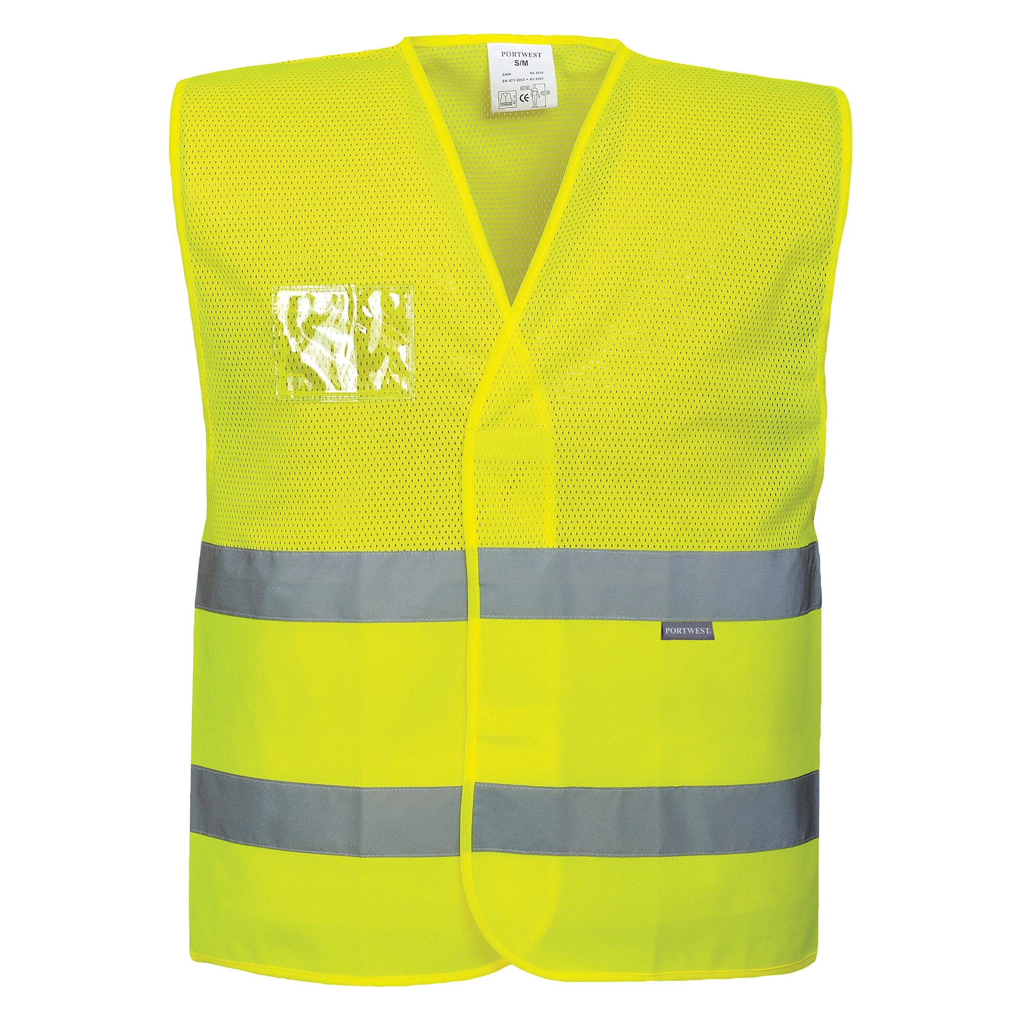 Descrizione dettagliataUn gilet in rete traspirante con tasca porta badge adatta ai climi più caldi.CaratteristicheTaglia L/XLParte superiore del torso in mesh per una maggiore traspirabilitàBanda riflettente per una maggiore visibilitàChiusura con fettuccia a strappo per un facile accessoPorta badge a doppio verso permette di visualizzare l'ID card sia in orizzontale che in verticaleVestibilità abbondante per un maggior comfortCertificato EN ISO 20471 per oltre 50 lavaggiCertificato CEMarcato UKCATessuto esterno: 100% Poliestere, ordito a maglia 124gTessuto a contrasto: MeshAir Hi-Vis 100% poliestere MeshNormeEN ISO 20471 Classe 1ANSI/ISEA 107-2015 TIPO R CLASSE 2