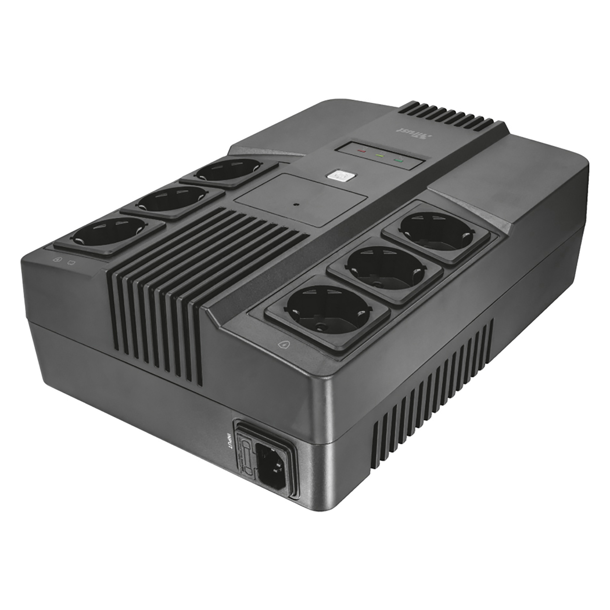 Affidabile UPS di riserva con batteria integrata da 800 VA, con 6 prese a parete, idoneo ad alimentare e proteggere i dispositivi elettronici.
