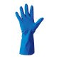 Guanto industriale in nitrile blu con con finitura antiscivolo a diamante su palmo e dita e clorinatura interna.