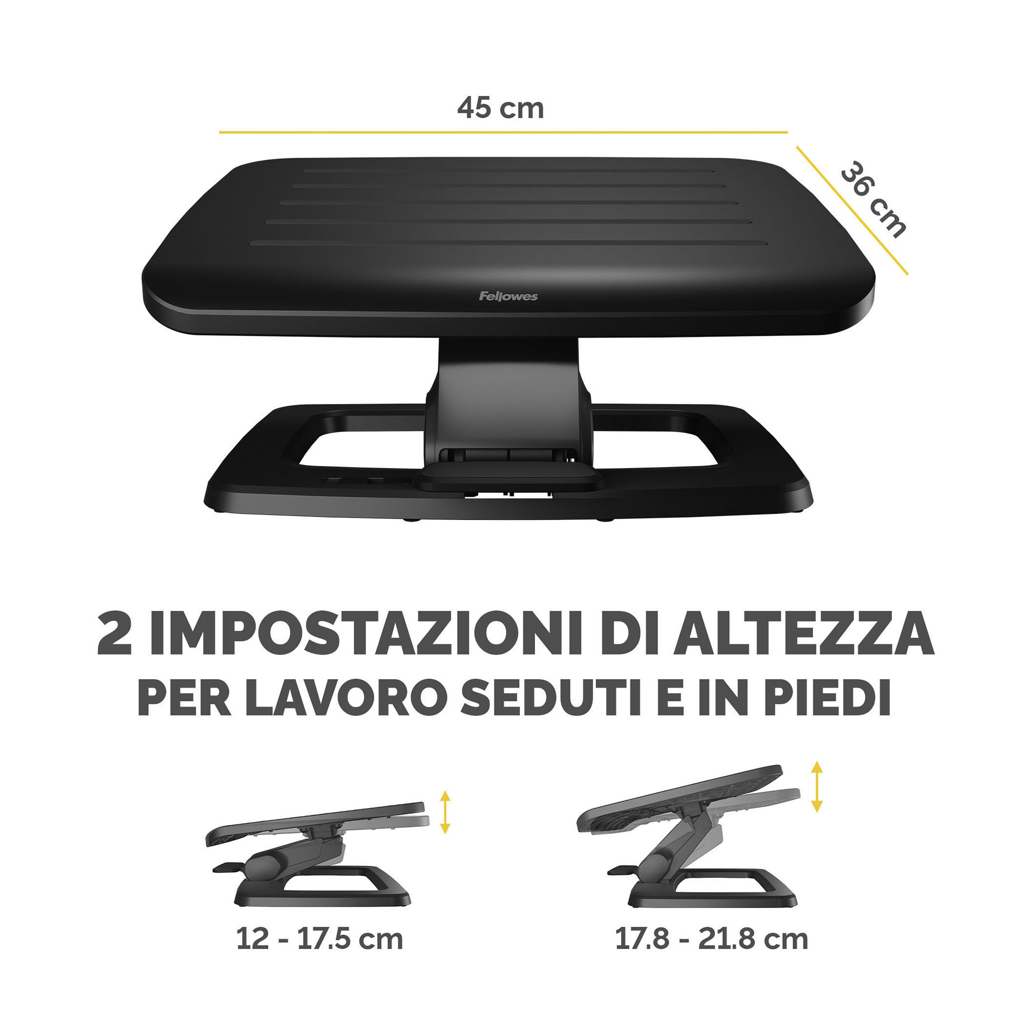 • Due regolazioni di altezza, per lavorare da seduto o in piedi.