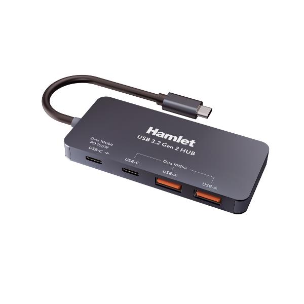 Hamlet 4 Port USB 3.2 è un Hub esterno che aggiunge due porte USB-C e due porte USB-A al vostro computer. L'hub è compatibile con lo standard USB 3.2 Gen 2 che offre una velocità di trasferimento dati fino a 10 Gbps. L'hub è inoltre dotato di una porta USB-C con funzione Power Delivery che permette di alimentare il notebook collegando un alimentatore in ingresso fino a 100 W.