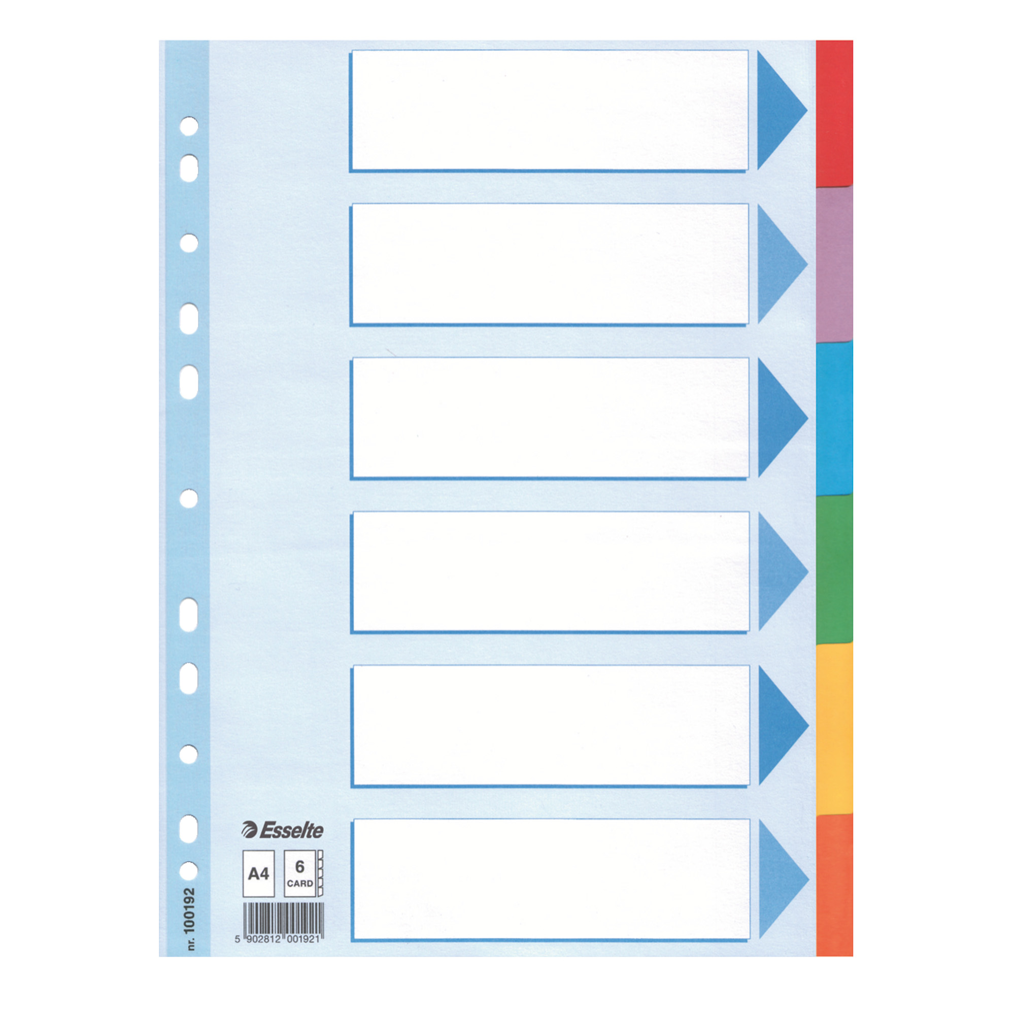 Intercalare cartoncino - 6 tasti colorati - A4 - Esselte