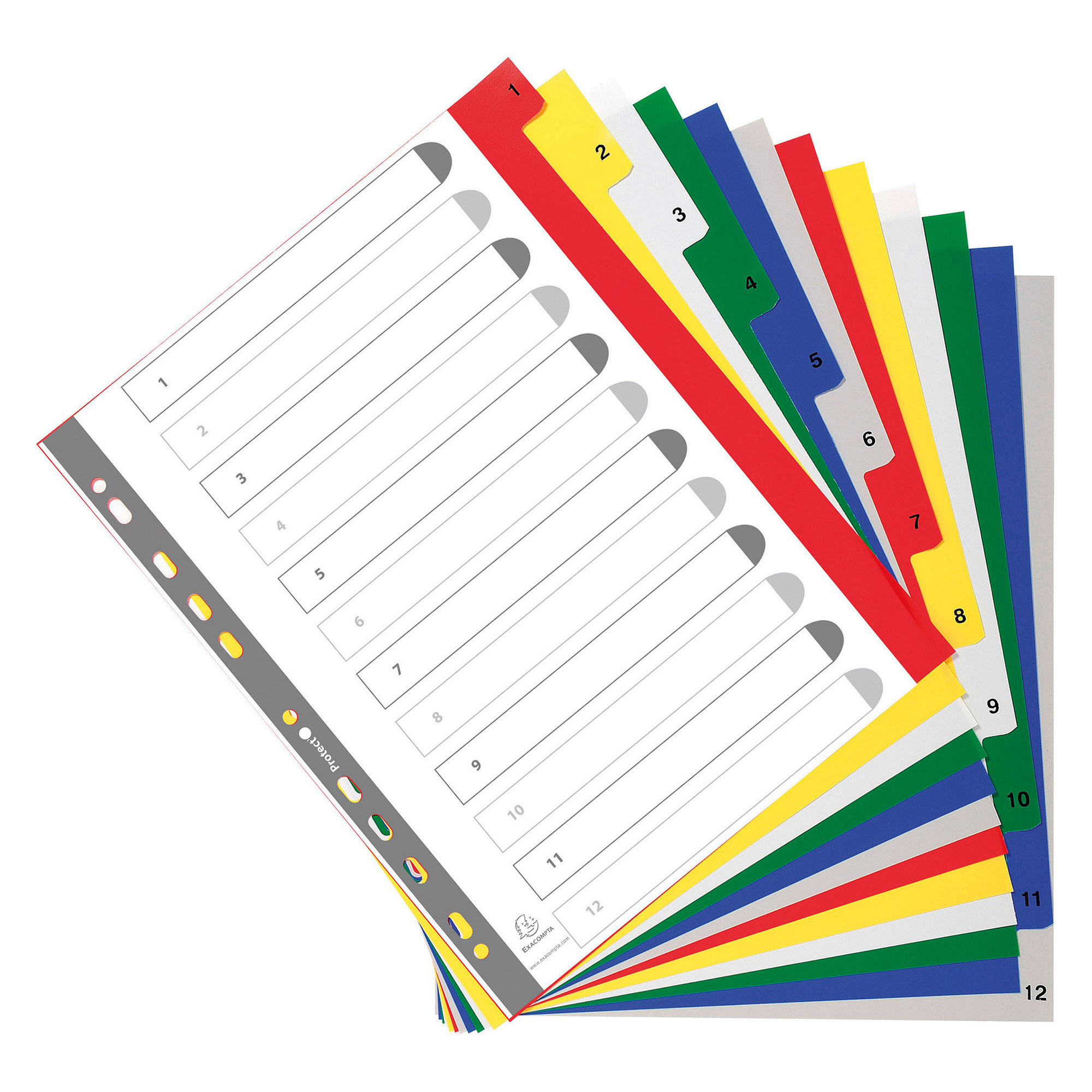 Descrizione dettagliataIntercalari in polipropilene con pagine stampate. Intercalari per formato A4 maxi con foratura universale. 12 tasti da 1 a 12, in colori vivaci assortiti.Dimensioni: 297 x 245 x 1 mm.