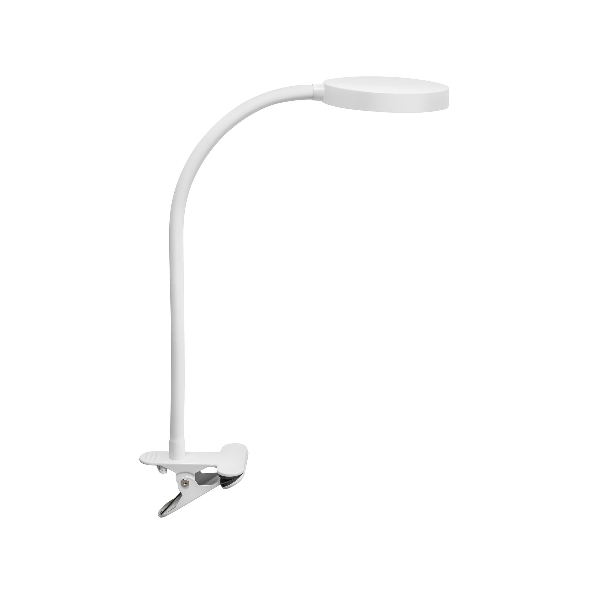 • Perfetta per piccoli spazi di lavoro o come lampada da comodino • Pratico interruttore sulla testa della lampada • Robusta clip in acciaio che garantisce un fissaggio sicuro e permette di essere applicata su differenti superfici fino a 5 cm di spessore come scrivanie, scaffali, testiere e specchiere • Braccio flessibile in metallo con testa regolabile • Indice di resa cromatica >80 • Dimmer: massimo 300 • Lunghezza del braccio: 45 cm • Acciaio e ABS • 50 000 ore • 5,46 W • Temperatura colore (Kelvin): 3000 K • Classe energetica G • Dimensioni: Testa 12 x 2 cm, braccio 45 cm, morsetto: 11 x 6 cm.