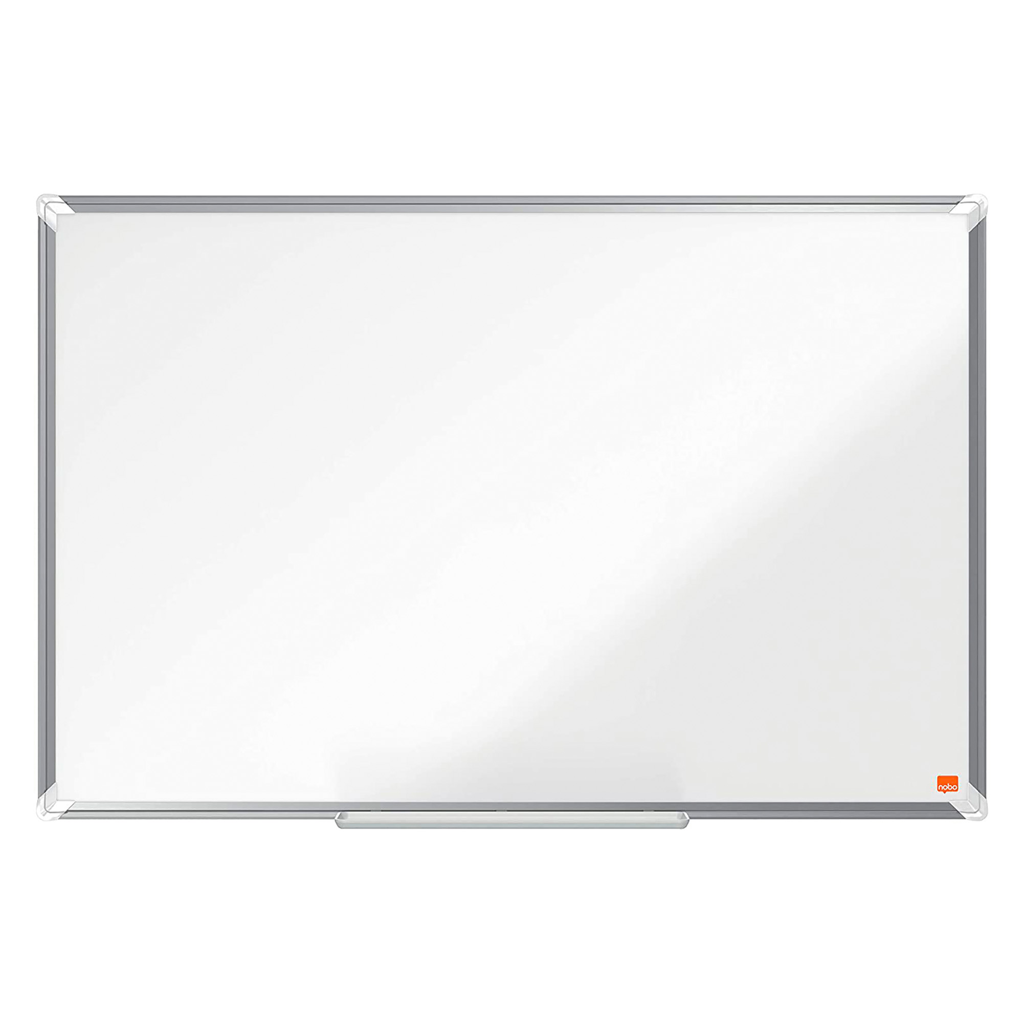 Lavagna bianca magnetica smaltata con una moderna ed elegante cornice in alluminio.