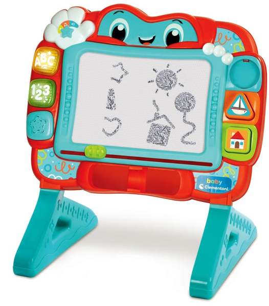 La divertente e coloratissima lavagna interattiva, lei stessa il personaggio, con cui giocare, imparare le prime lettere e i primi numeri e disegnare con gli stampini o con la matita.