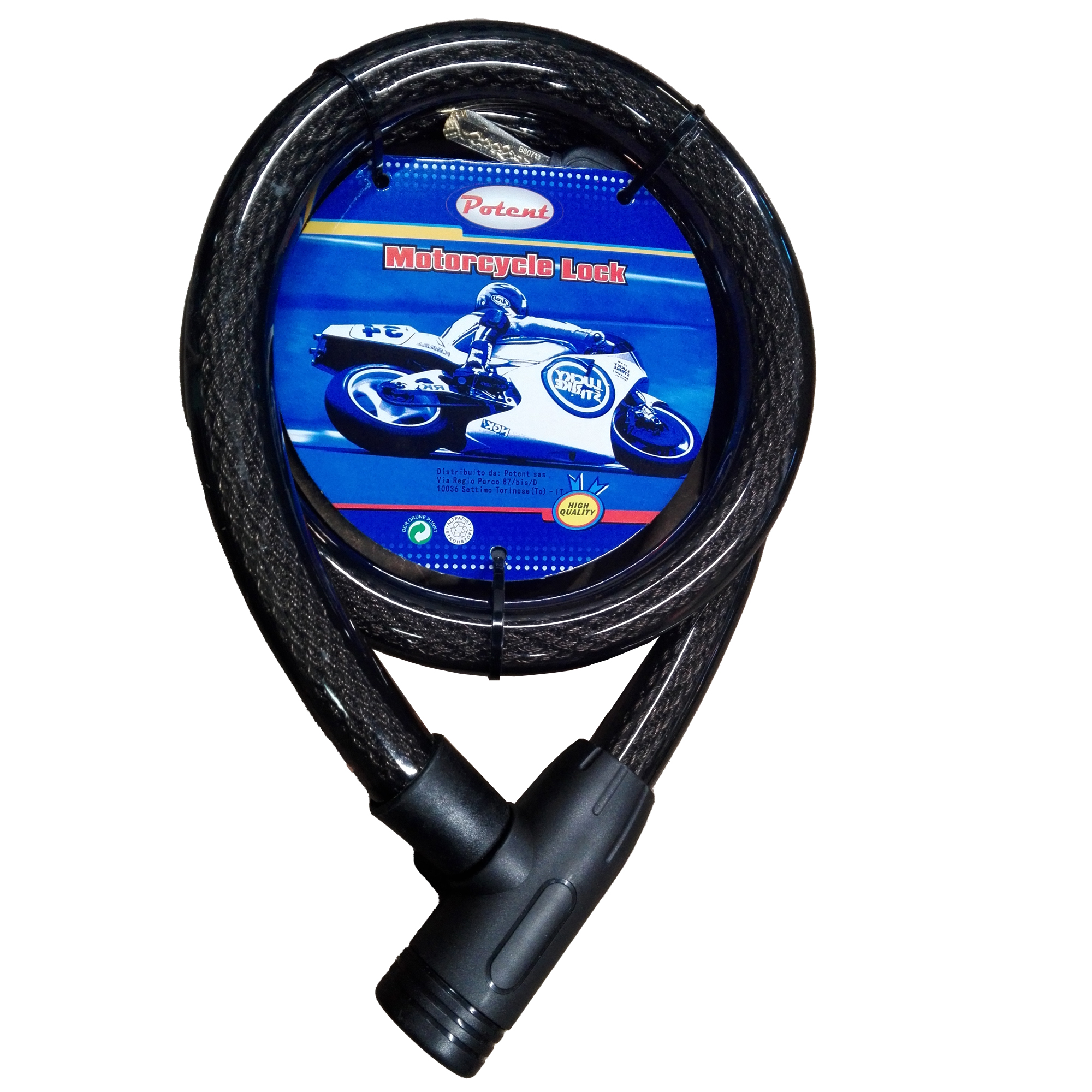 Descrizione dettagliataCavo corazzato con ricopertura in plastica. Fornito con due chiavi. Dimensioni ?25x150mm