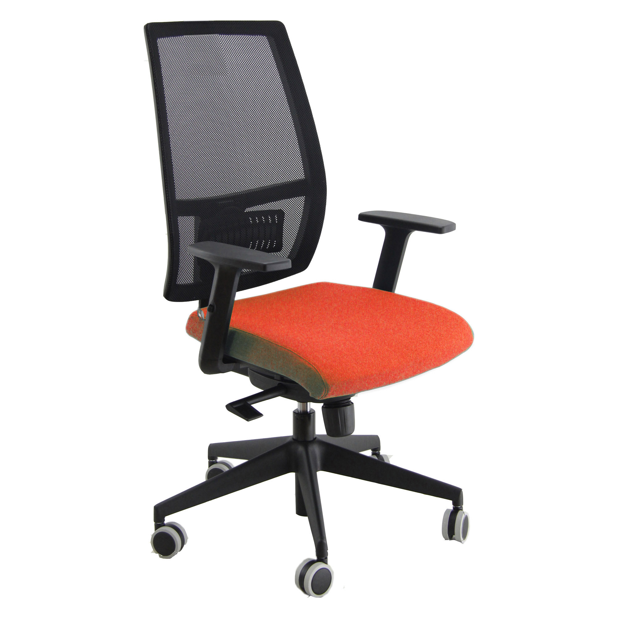 Sedia girevole Semi Direzionale. Ergonomica con schienale in rete UP-DOWN e Supporto lombare. Elevazione a gas. Meccanismo synchro con 4 blocchi antishock a contatto permanente con sedile traslabile. Altezza Totale: 102-113 cm; Altezza Seduta: 42-54 cm; Altezza Schienale: 60 cm; Profondità seduta: 49 cm; Larghezza Seduta: 51 cm; Larghezza Schienale: 48 cm; Braccioli: opzionali.