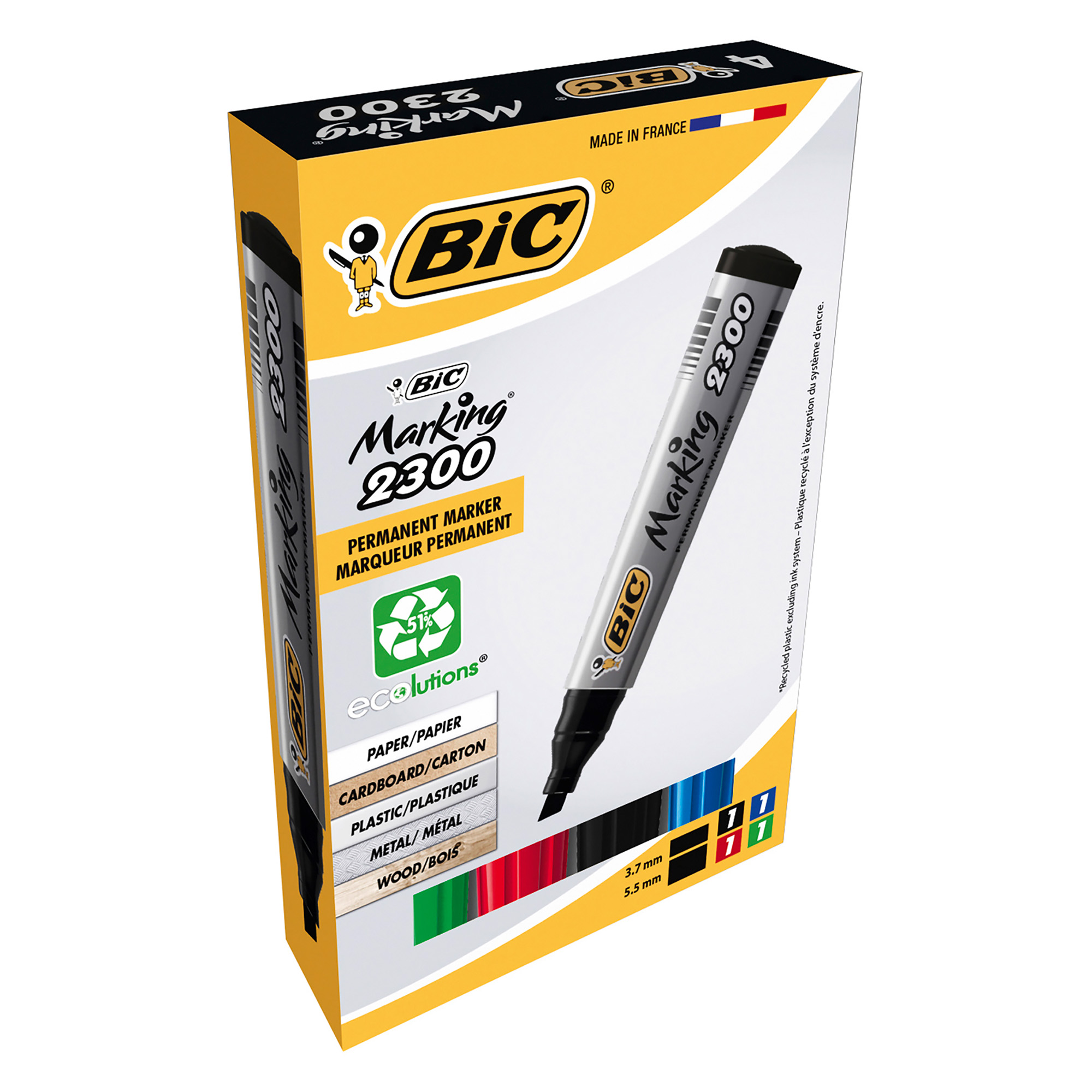 Il marcatore permanente BIC Marking 2300 scrive con inchiostro resistente agli agenti atmosferici e alla luce sulla maggior parte delle superfici.