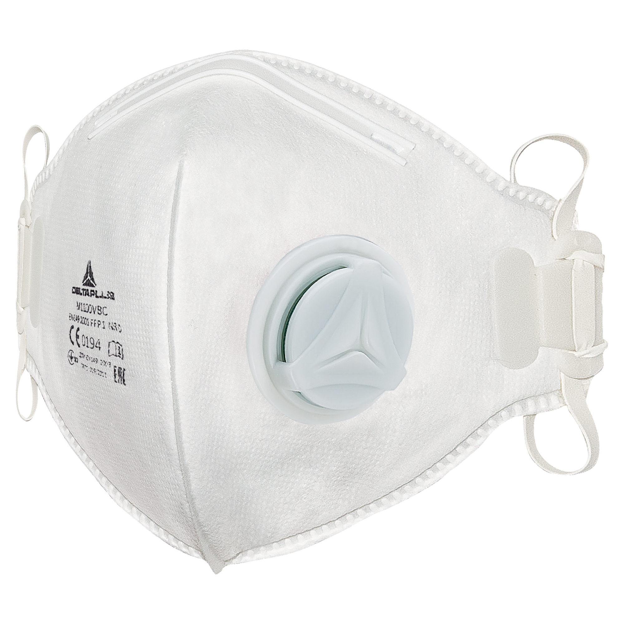 Mascherina filtrante FFP1 in tessuto non tessuto. Stringinaso regolabile. Valvola di espirazione alta performance. Piegamento verticale. Scatola da 10 mascherine imbustate singolarmente. Categoria DPI: 3. Certificazione CE. Conformità alla norma EN149:2001+A1:2009.