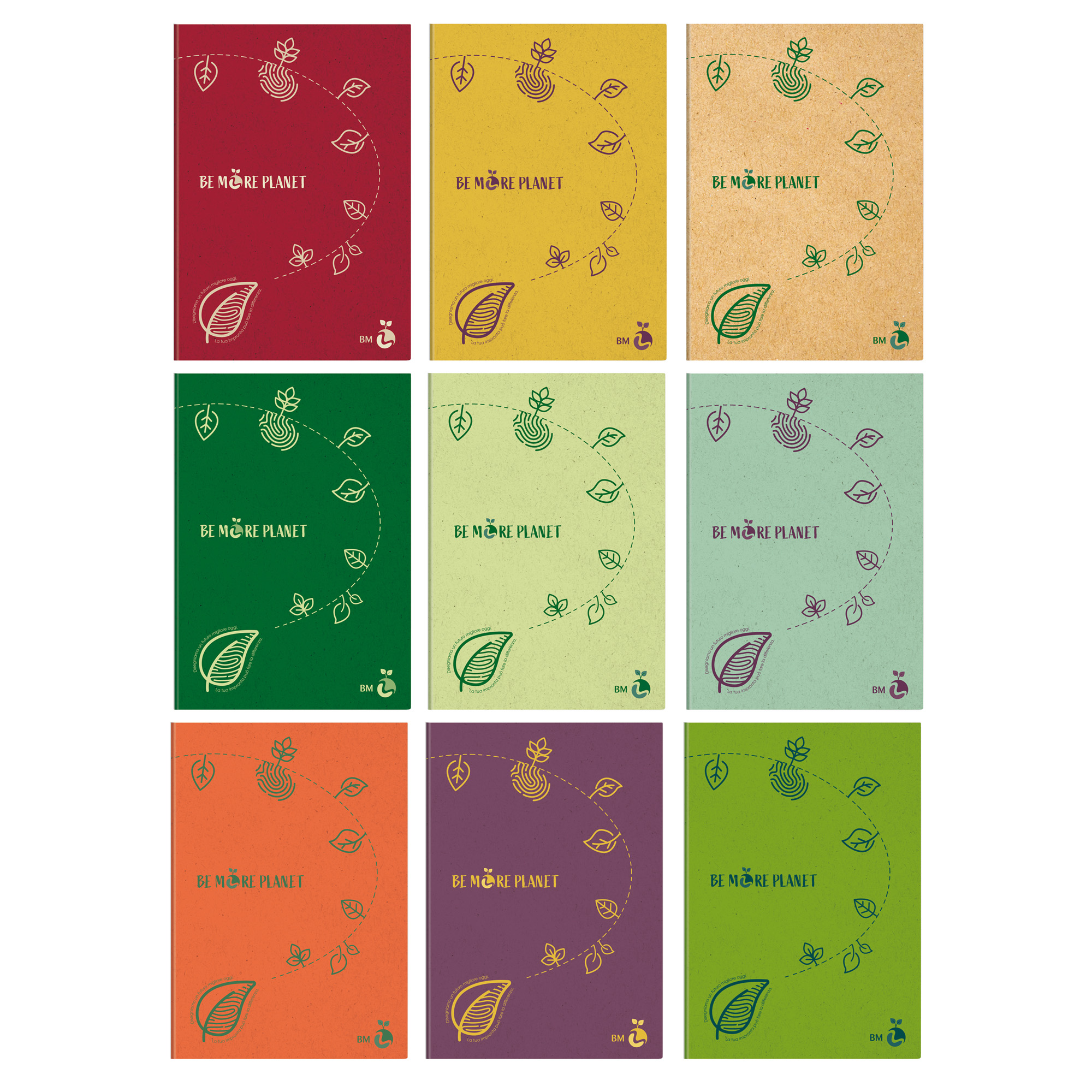 Descrizione dettagliataNuovo maxiquaderno Be More Planet realizzato con materie prime ecosostenibili FSC. Assortimento con 9 colorazioni ispirate alle sfumature della natura. 100% plastic free. Rilegatura con punto metallico.