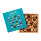 Ingredienti: zucchero, burro di cacao, LATTE intero in polvere, pasta di cacao, MANDORLE, NOCCIOLE, BURRO anidro, LATTE scremato in polvere, sciroppo di glucosio, destrosio, PISTACCHI, scorze di limone, scorze di arancia, sciroppo di zucchero invertito, LATTOSIO, sciroppo di glucosio-fruttosio, Marc de Champagne, kirsch, emulsionante (lecitine (di SOIA)), alcool, PANNA in polvere, LATTE intero, farina di FRUMENTO, caffè, aromi naturali, umidificante (invertasi), estratto di malto d'ORZO, aromi, PANNA, sale, succo di limone concentrato, aroma naturale di arancia, agente di rivestimento (gomma arabica), acidificante (acido citrico), grasso di cocco, sciroppo di zucchero caramellato. Può contenere altra FRUTTA A GUSCIO. *Questi cioccolatini contengono alcool.