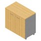 Ante battenti in pannello di conglomerato ligneo sp. 18 mm rivestito con melaminico antiriflesso, antigraffio e lavabile, bordato sui 4 lati in ABS antiurto in tinta sp. 1,5 mm. Cerniere in metallo con apertura a 105°. Serratura con chiave pieghevole antifortunistica.