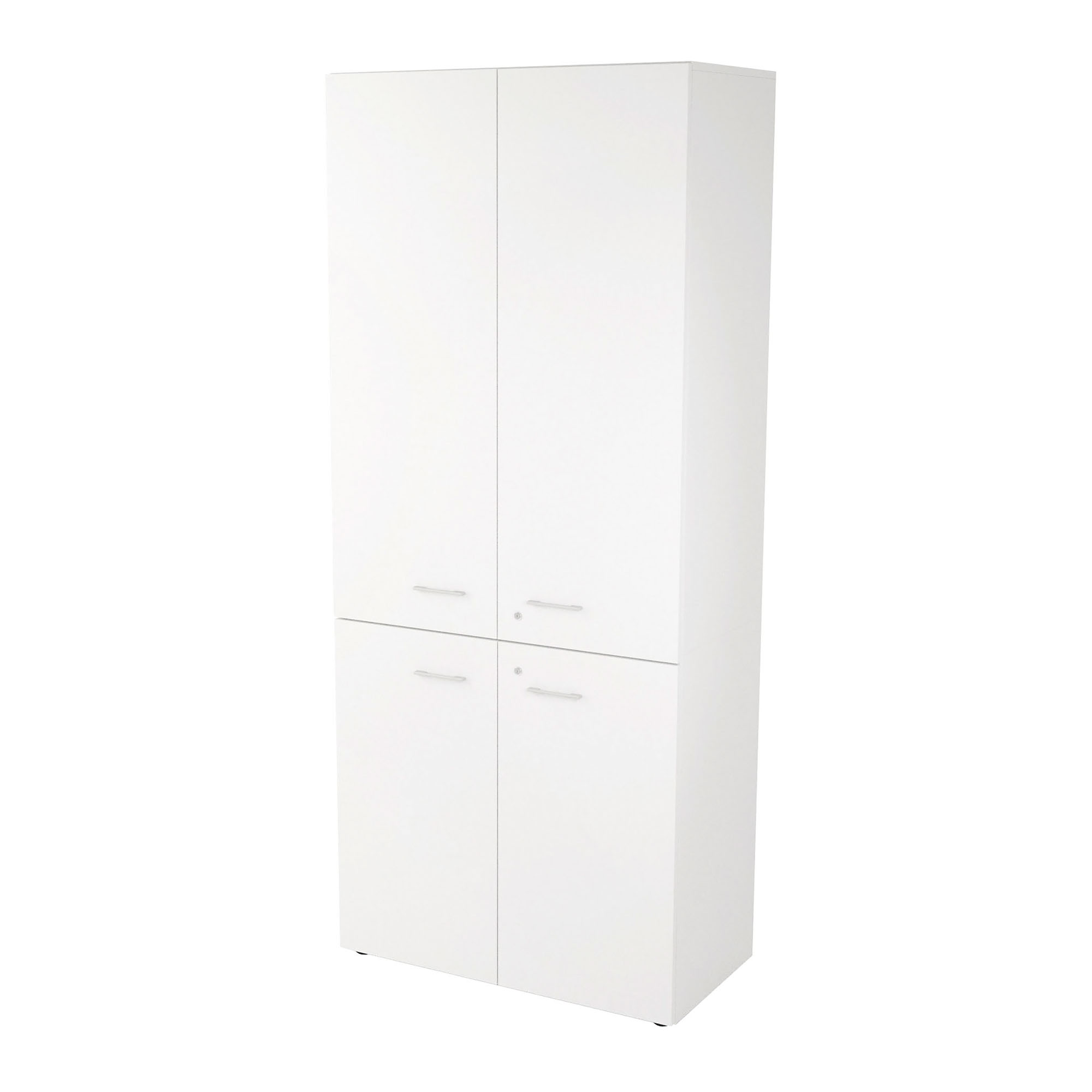 Ante con maniglie antiurto grigio alluminio e serratura in cromo lucido con chiave ripiegabile antinfortunistica.