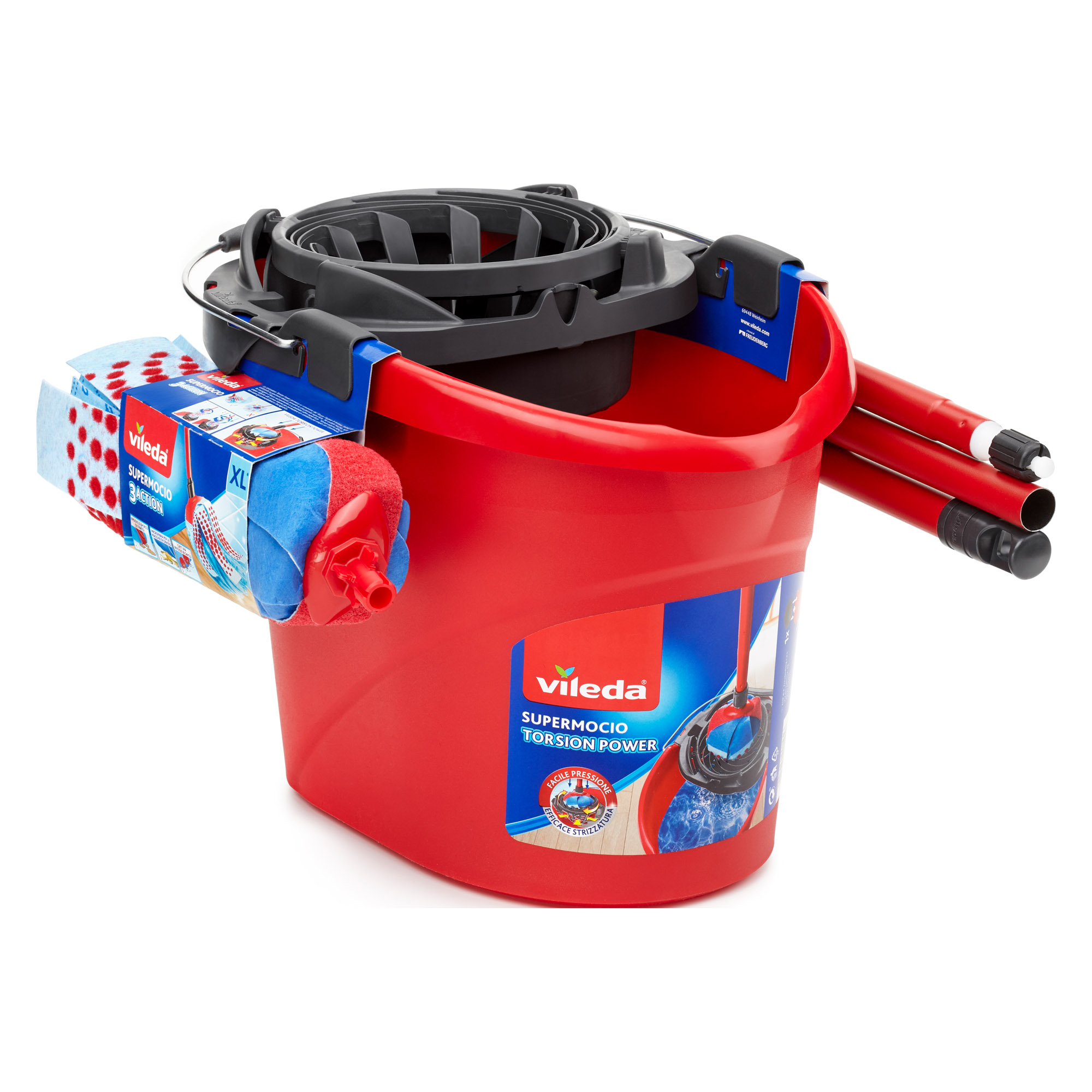 Super mocio Vileda per pavimenti, colore rosso, compreso di secchio, mop e manico.