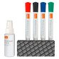Contiene quattro pennarelli cancellabili a secco(nero, rosso, verde e blu), un cancellino e uno spray per la pulizia da 50ml