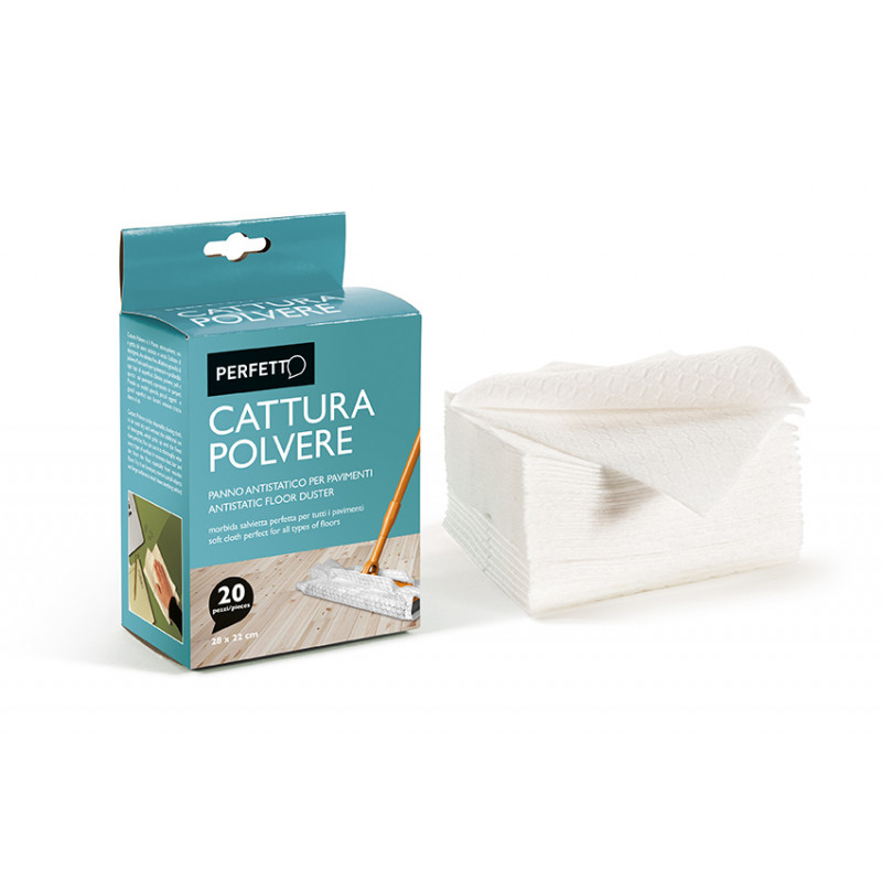 Descrizione dettagliataconf. da 20 pezzi panni bianchi catturapolvere antistatici per pavimenti cm. 22x28