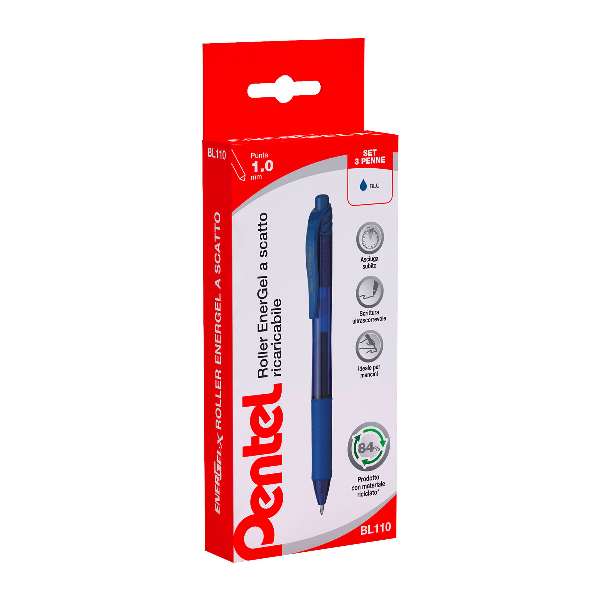 Penna gel roller scatto Pentel Energel X 1.0 mm 3 unità