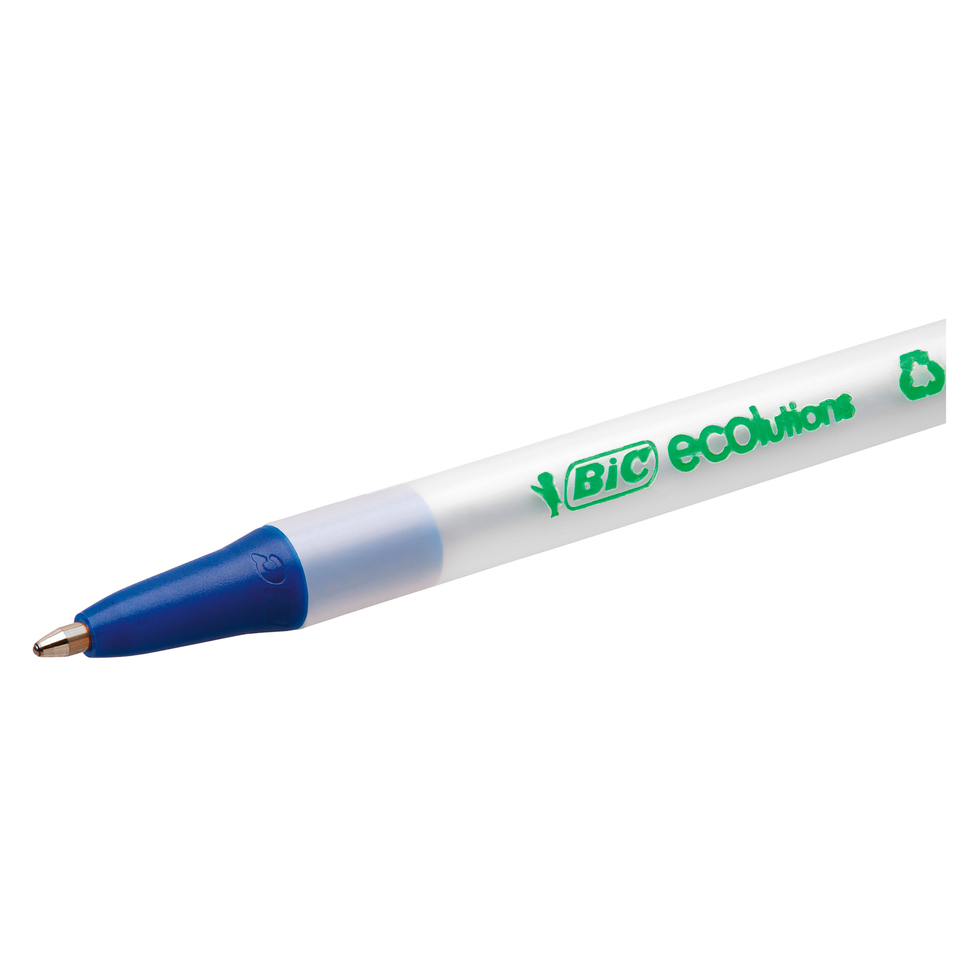 Questa penna a scatto blu Bic ECOlutions Clic Stic è dotata di un semplice fusto cilindrico ed è prodotta con il 78% di materiale riciclato.