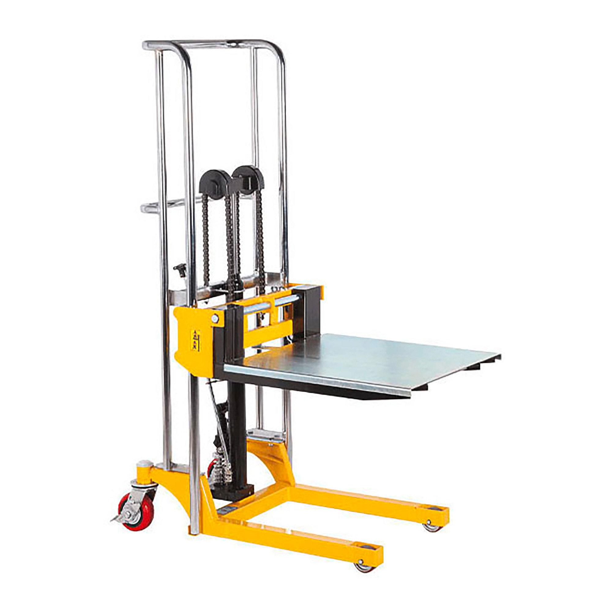 Sollevatore manuale con piattaforma sollevabile fino a 130 cm, portata fino a 400 Kg.