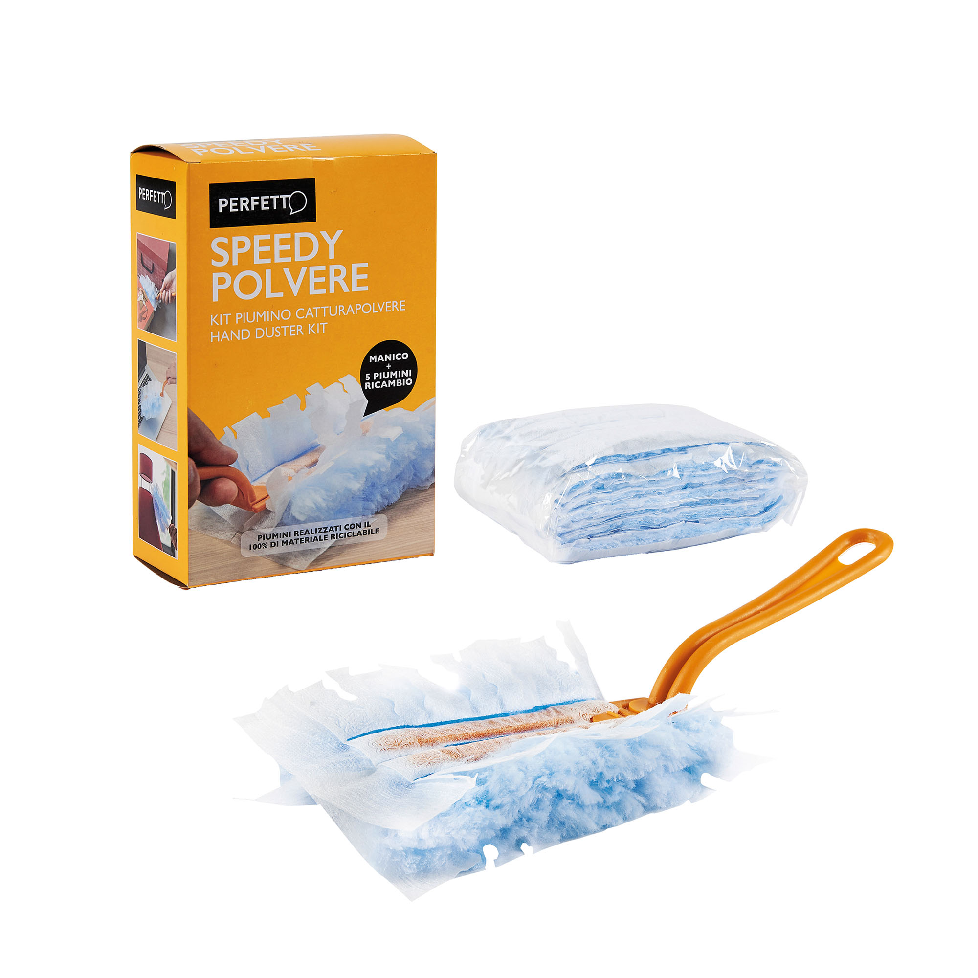 Kit pimino cattura polvere SPEEDY POLVERE composto da manico + 5 piumini ri ricambio