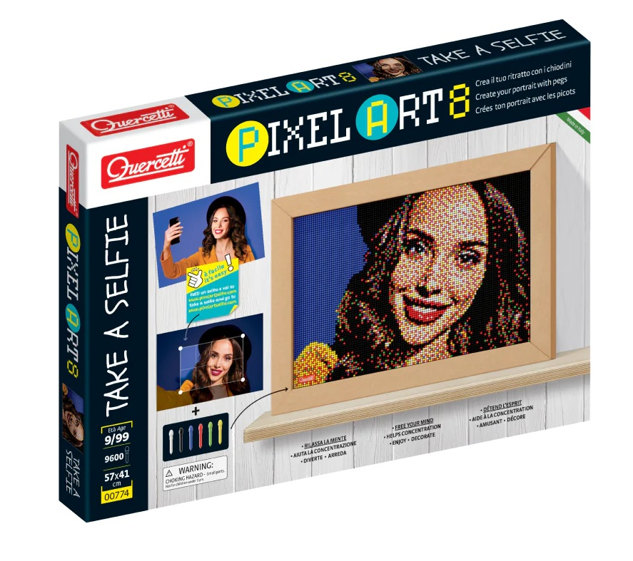 Descrizione dettagliataRealizza un selfie con i chiodini e appendilo in casa come un quadro.Incorniciato e visto dalla giusta distanza, sembra una vera fotografia.