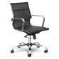 Poltrona tecnologicamente avanzata in acciaio cromato con seduta in rete metallica ergonomica e traspirante.
