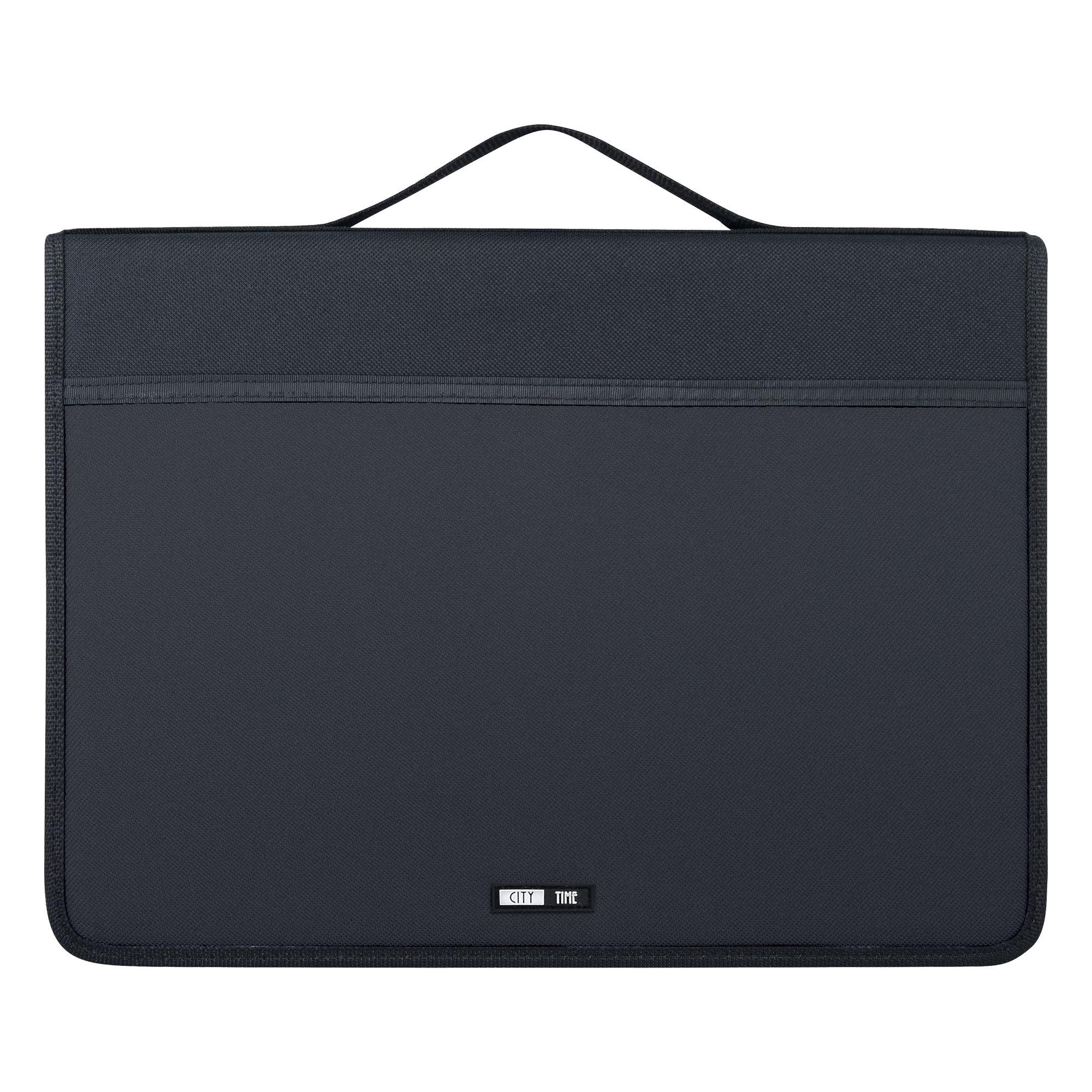 Descrizione dettagliataPortablocco in tessuto tecnico con anelli e manico. Formato A4, chiusura con zip, scomparti per biglietti, 4 anelli diam. 3cm, tasca interna portadocumenti, portapenna, completo di blocco. Dimensioni 26x36cm.