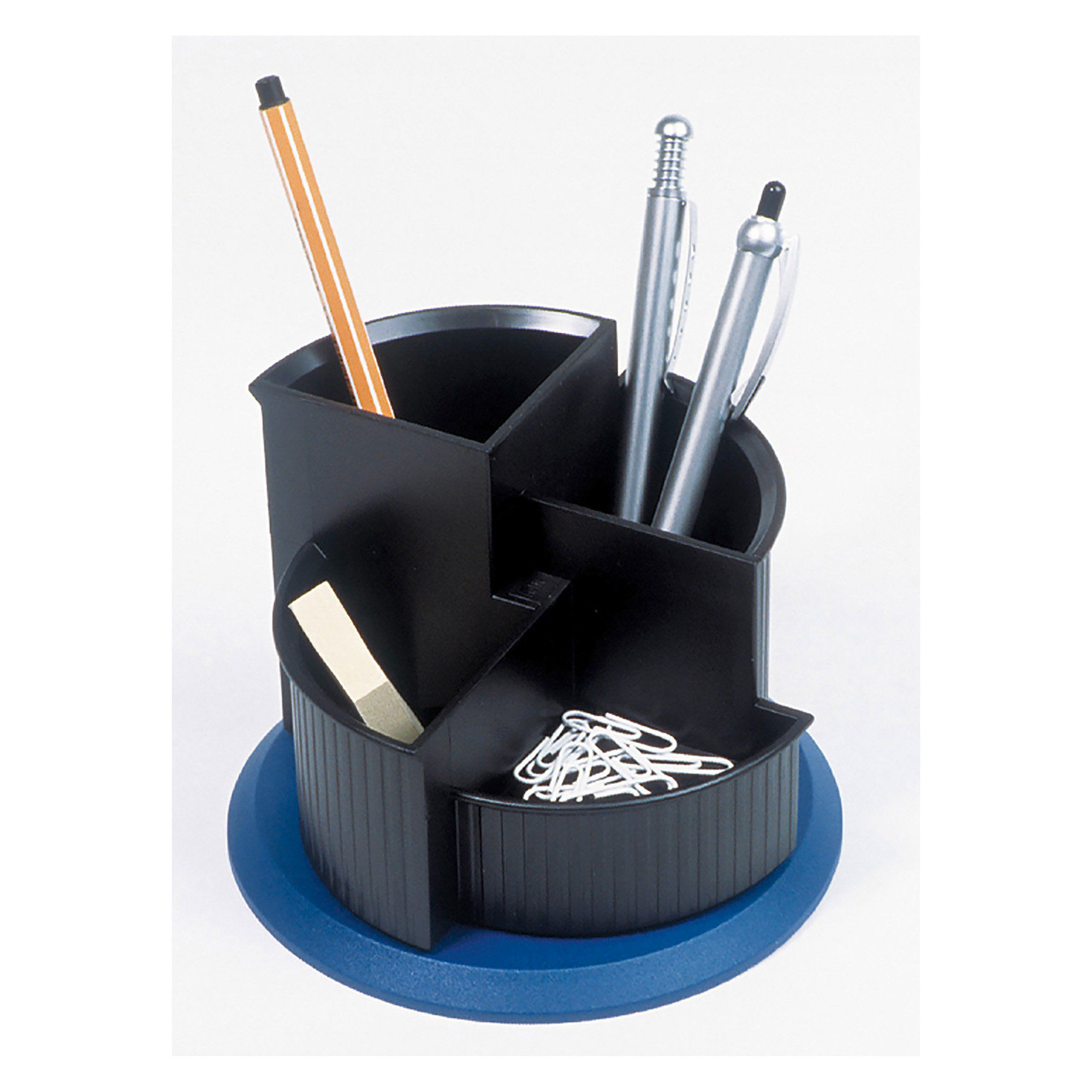 Dotato di 4 scomparti con base girevole, questo portaoggetti da tavolo helit costituisce un'attraente aggiunta a qualsiasi scrivania.