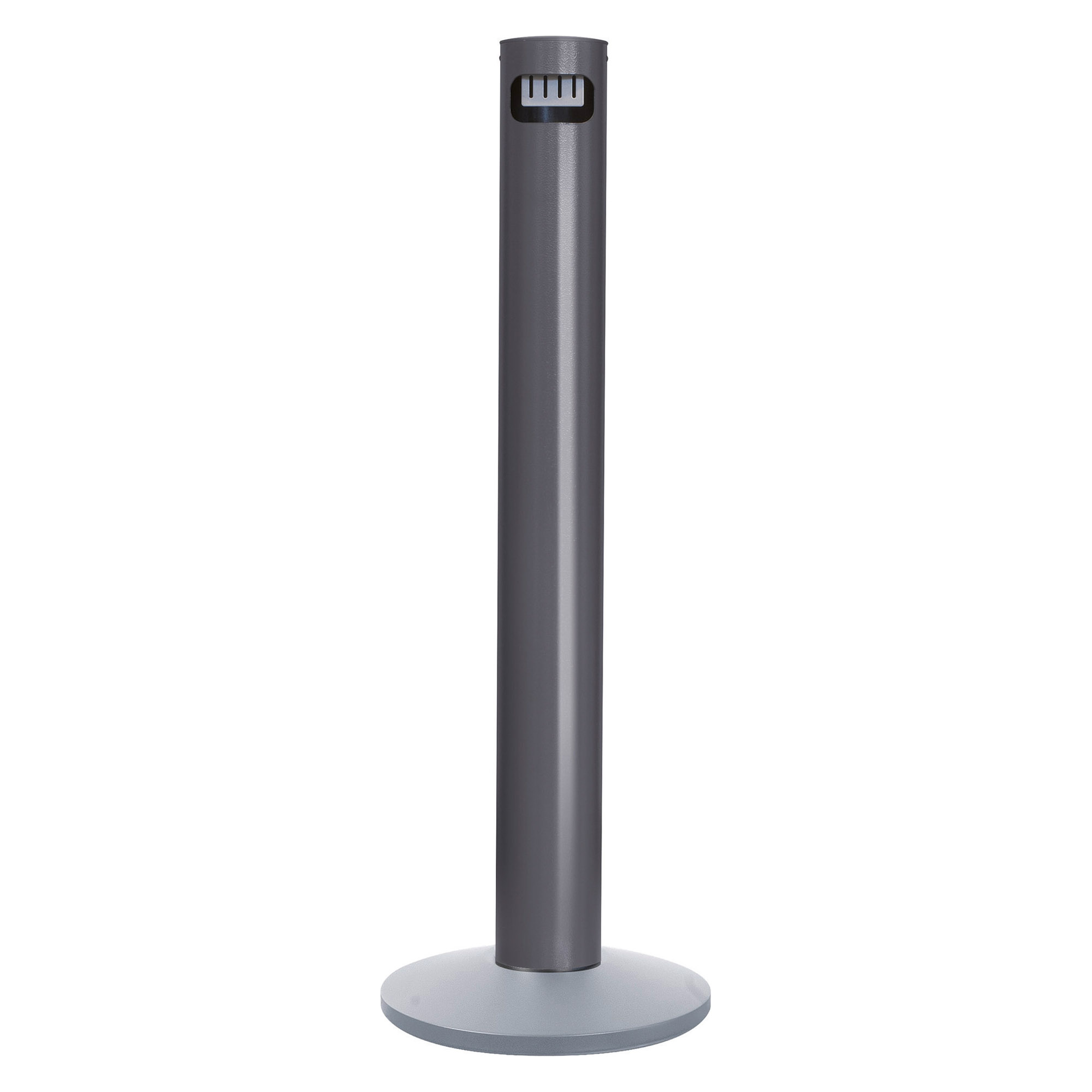Descrizione dettagliataPosacenere a colonna in alluminio verniciato nero micaceo.Si presenta con una griglia spegni sigaretta, fusto interno in banda stagna, completo di serratura.Base in PP nera con peso in metallo verniciato.