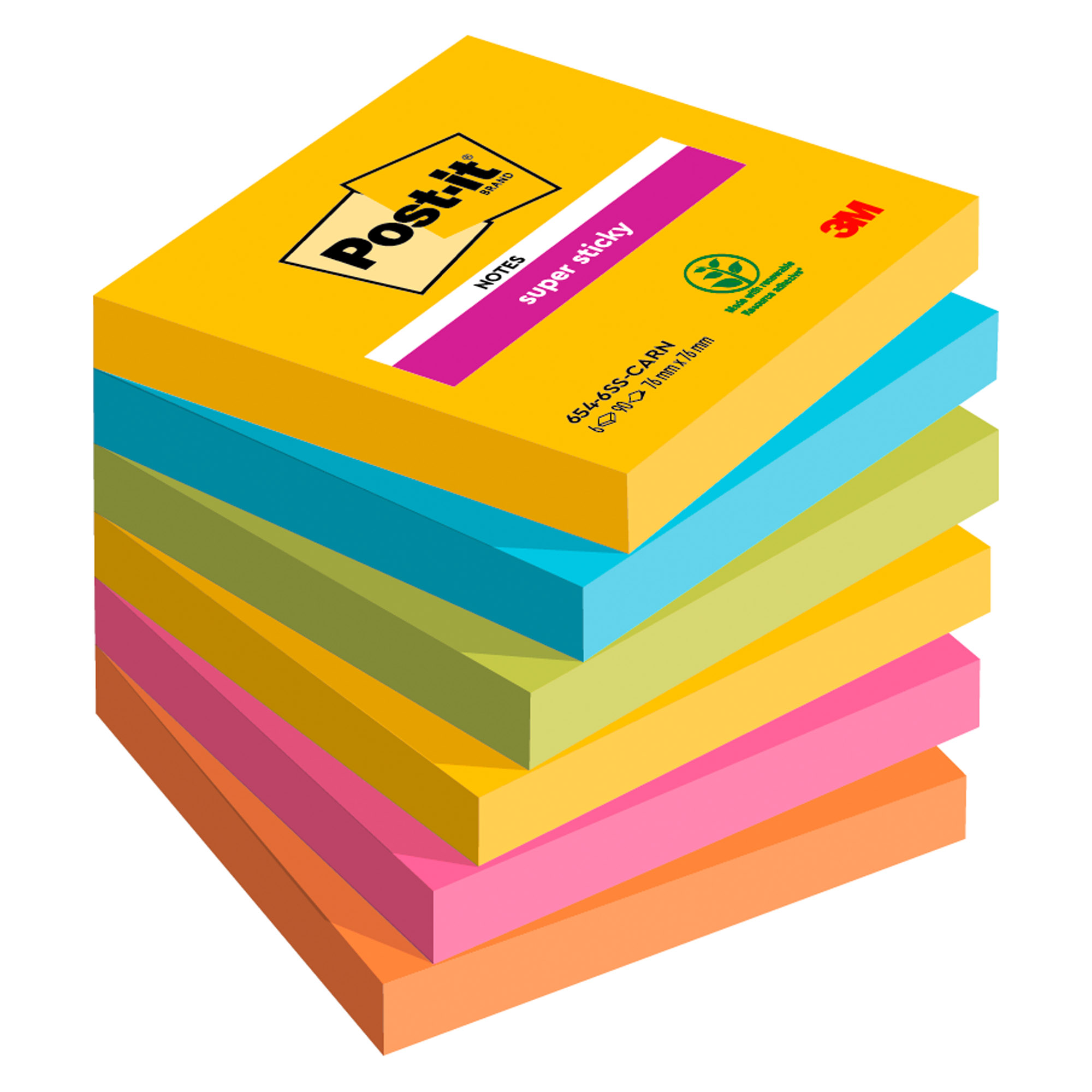 Foglietti Post-it® Super Sticky con adesivo rinforzato che si attacca praticamente su tutte le superfici senza lasciare traccia.