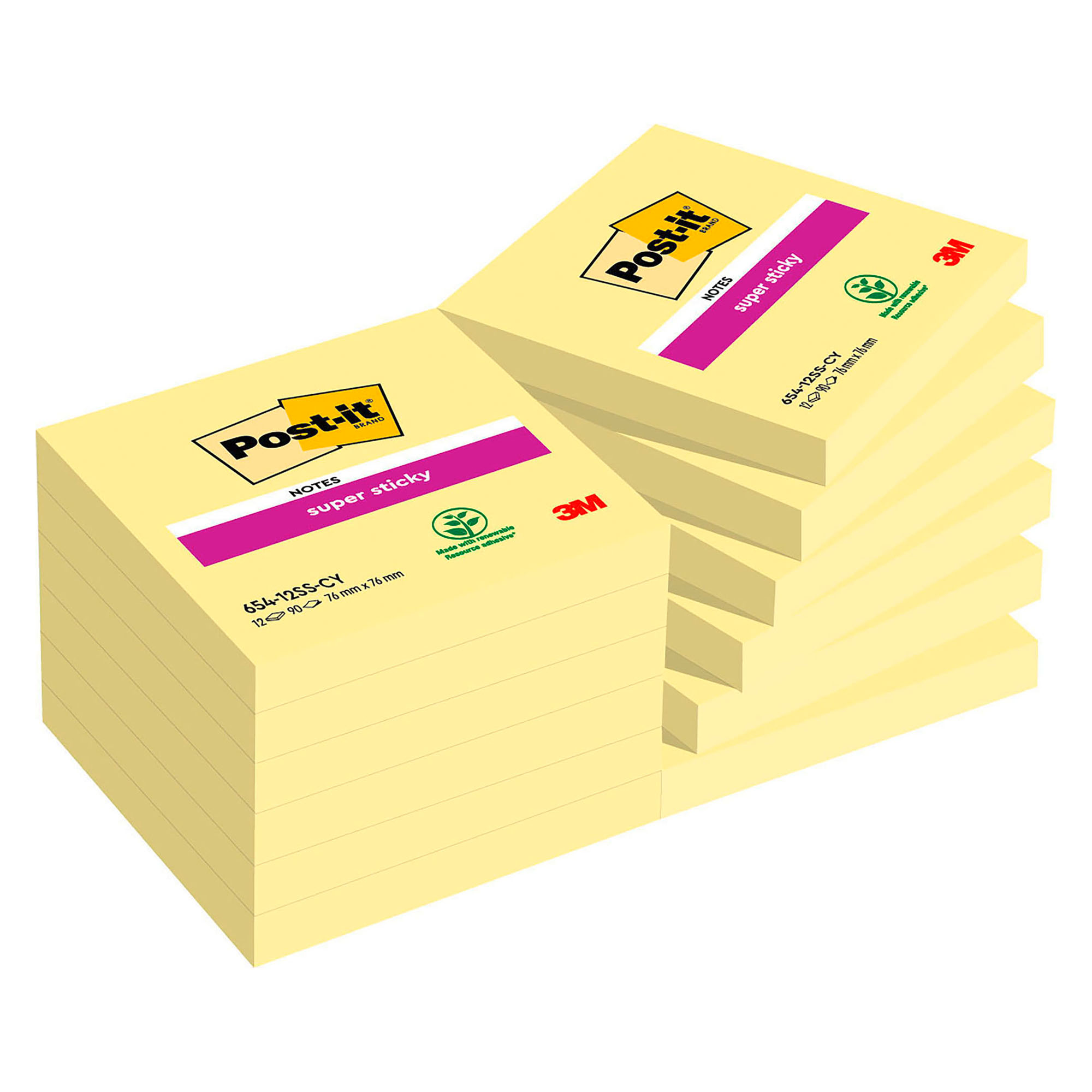 In confezione da 12 blocchetti formato 76 x 76 mm da 90 fogli riposizionabili cadauno.