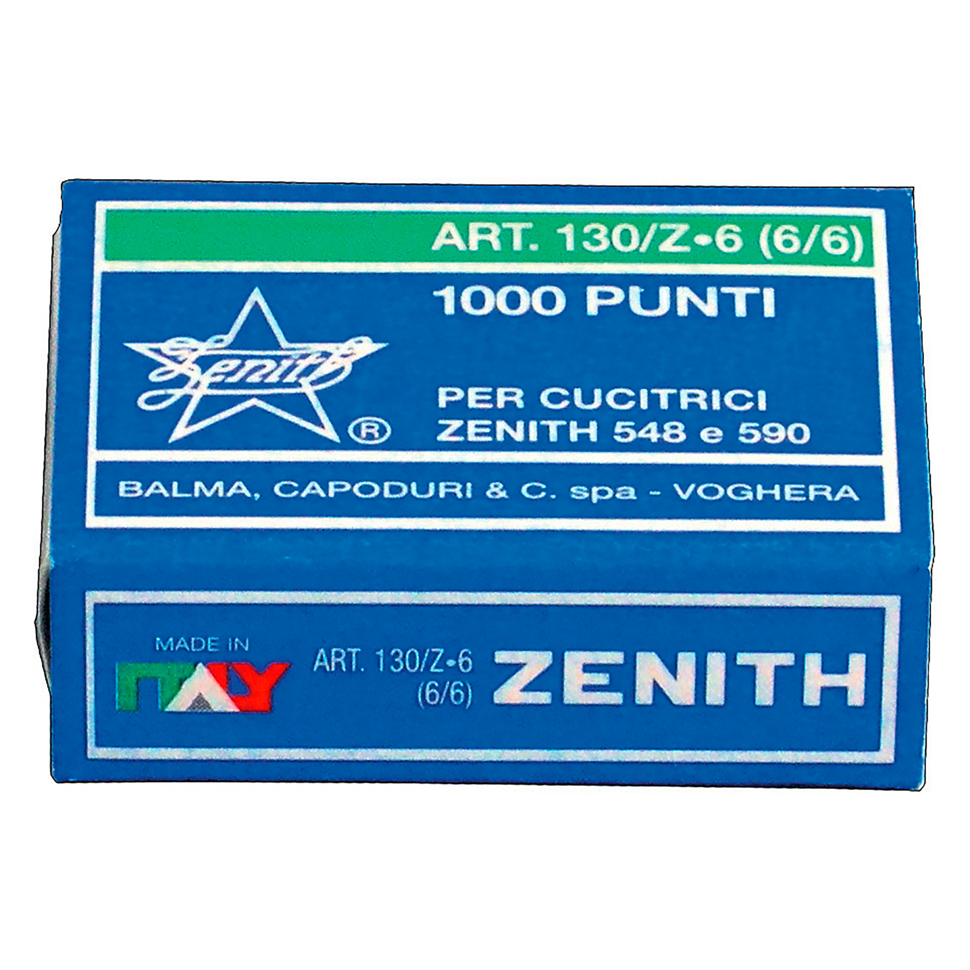 Descrizione dettagliataRealizzati per un perfetto funzionamento delle cucitrici,senza inceppamenti. Possono essere usati con cucitrici Zenith: 530/548/548E/548E2/590/590FUN. Punti metallici in acciaio zincato.Confezione da 10000 pezzi.Colore: grigio.