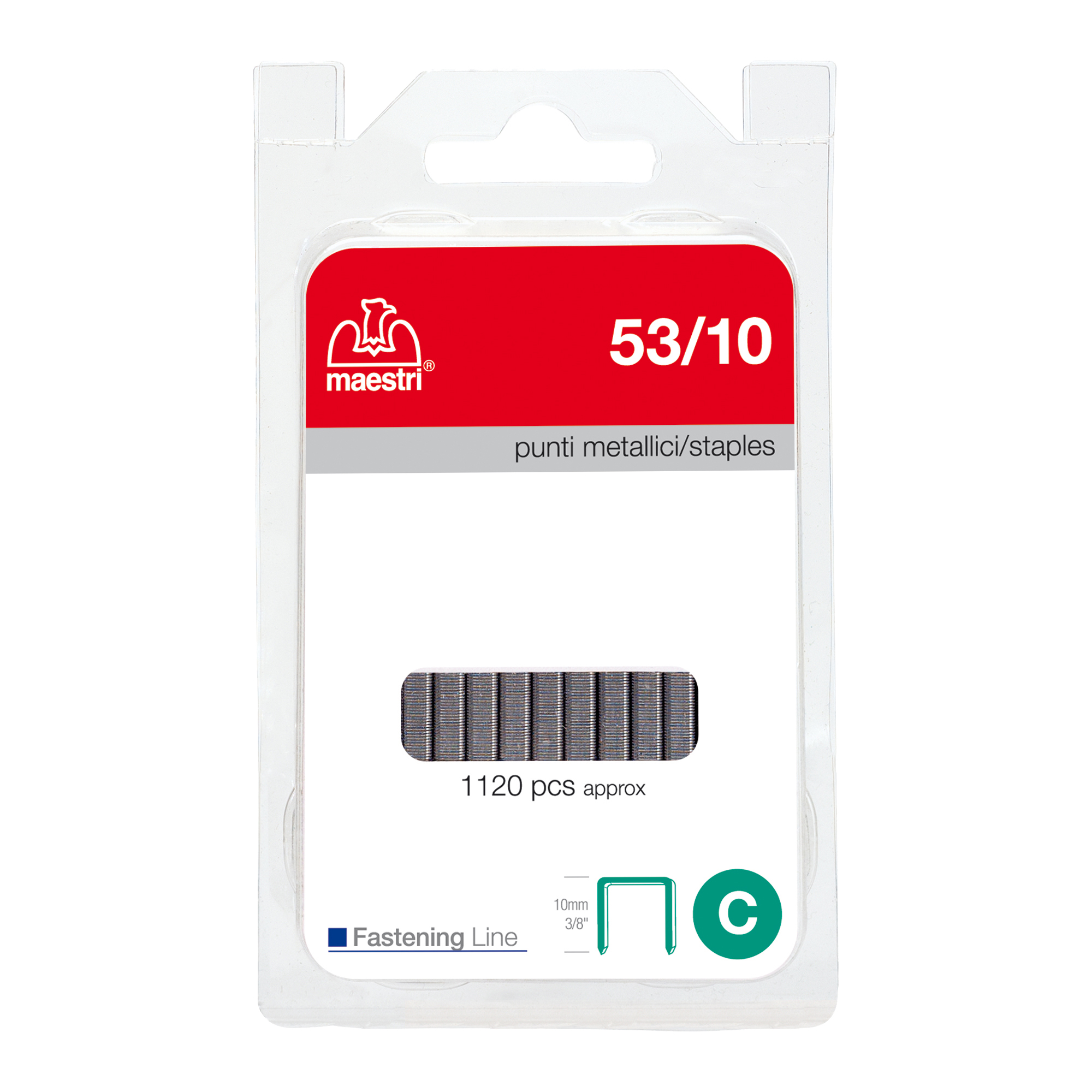 Descrizione dettagliataPunti zincati per fissatrici altezza 10mm. Confezionati in blister da 1120 punti.
