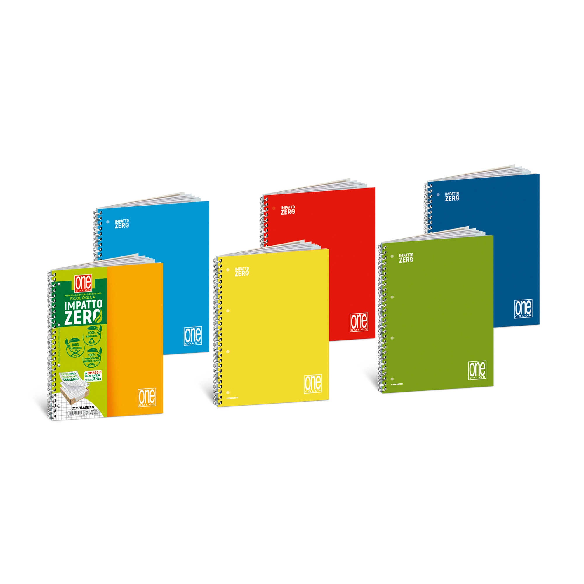 Maxi quaderno spirale One Color Formato 22,2x29,7. Carta riciclata da 80 gr/mq. 80 fogli (160 facciate scrivibili).