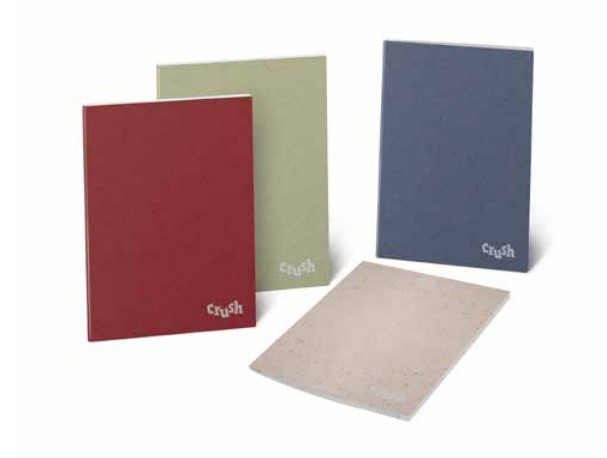Quaderni in formato A5 con copertina colorata ecosostenibile realizzata con cartoncino Crush. Qualità e sostenibilità in un solo prodotto! I residui di nocciole, ciliegia, lavanda e kiwi sono stati utilizzati nelle copertine colorate, andando a sostituire fino al 15% di cellulosa da albero. La carta interna è da 80g/m2 e 100% riciclata. Disponibili in righe e quadretti, 4 copertine di diversi colori.