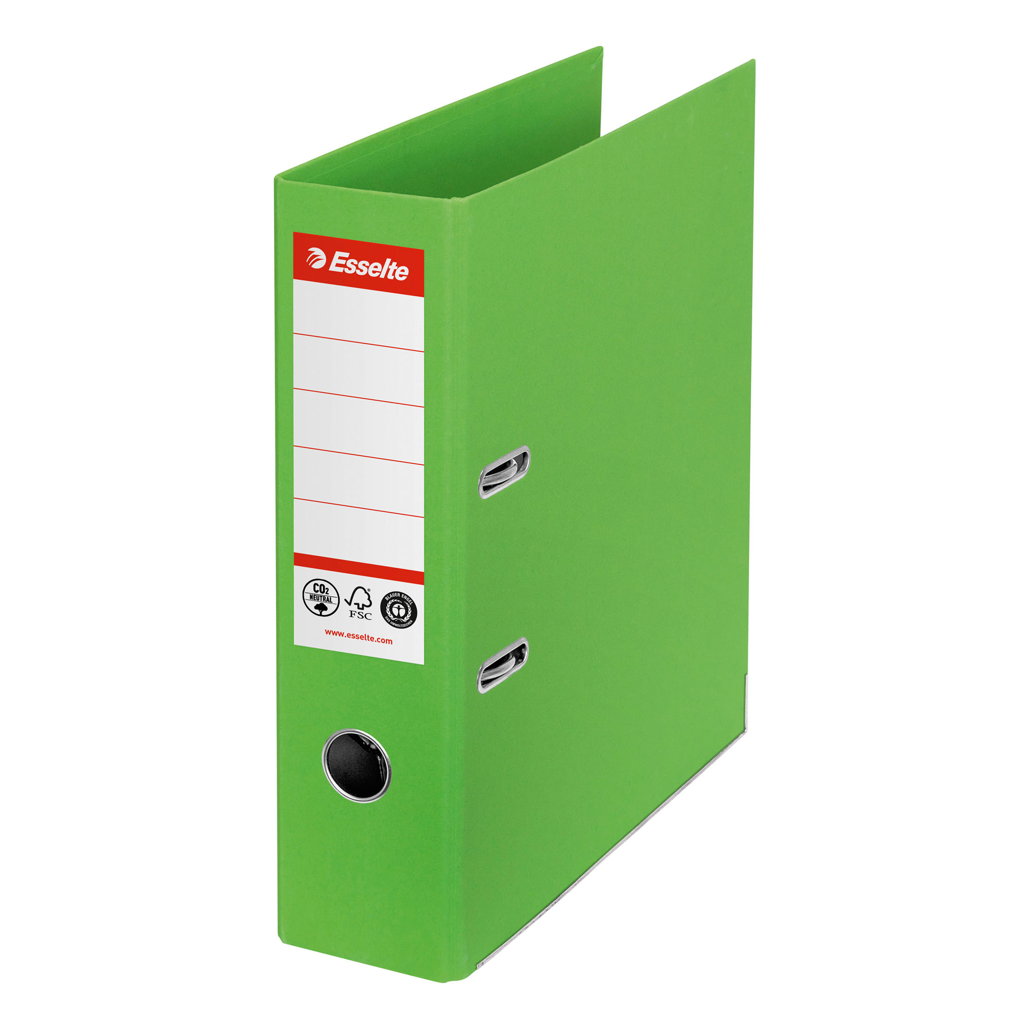 Registratore ecologico con meccanismo a leva Number 1, realizzato in cartone riciclato al 100%, con certificazioni ambientali Climate Neutral, FSC e Blue Angel a zero emissioni CO2.