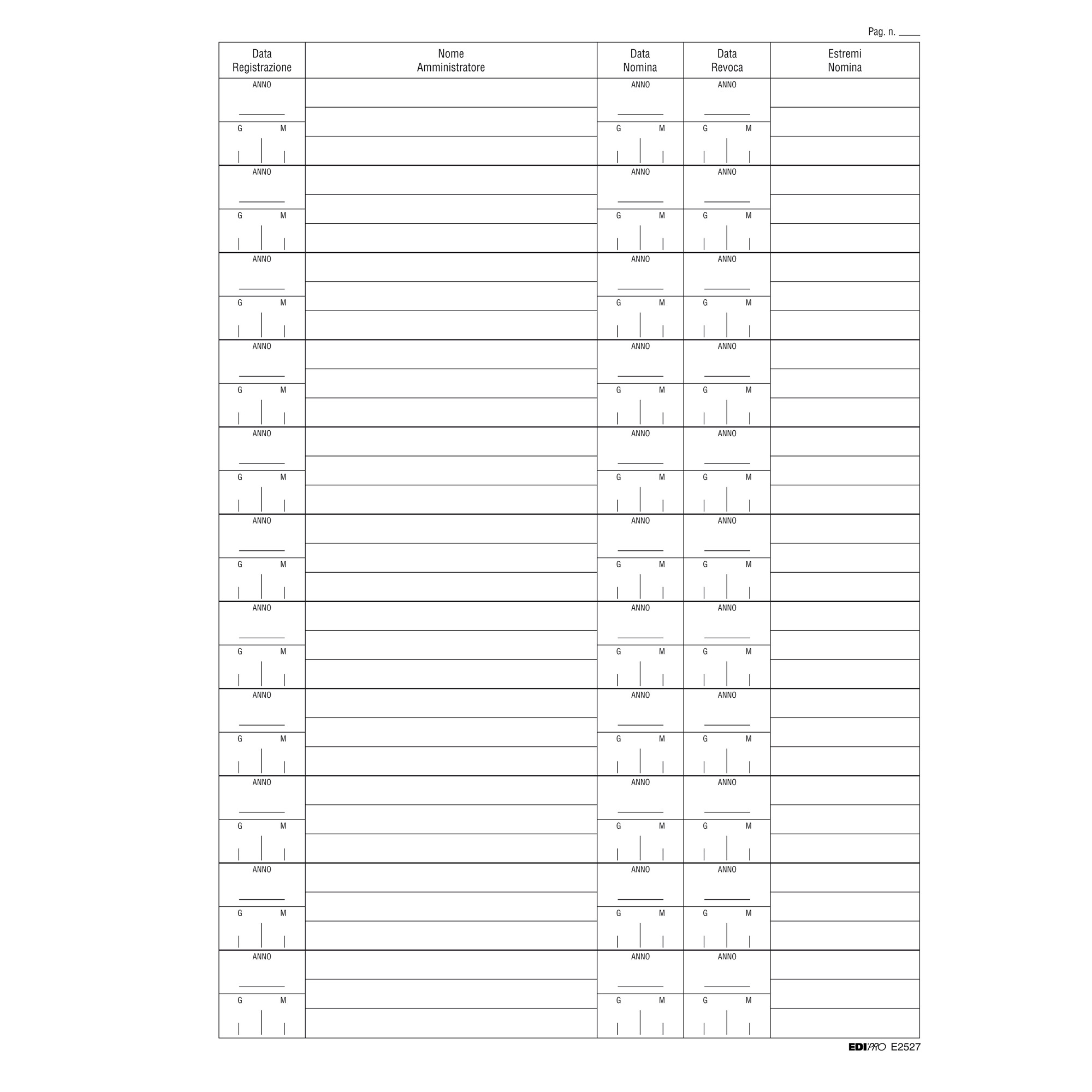 Descrizione dettagliataREGISTRO NOMINA/REVOCA AMMINISTRATORE. Formato 29x21cm. Fogli 16. 2 copie ric.