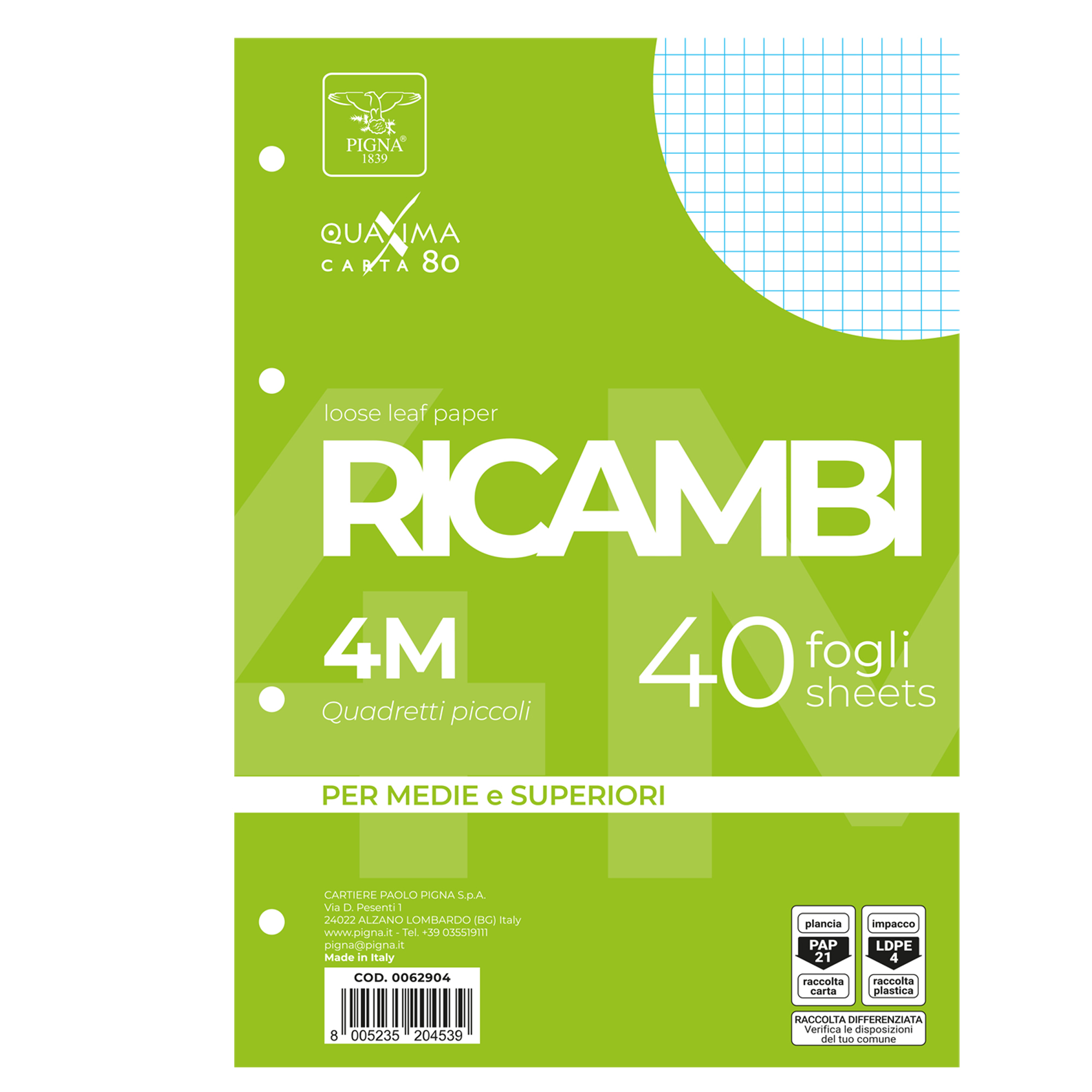 Ricambi forati Quaxima - A4 - 4 mm - 80 gr - 40 fogli - Pigna