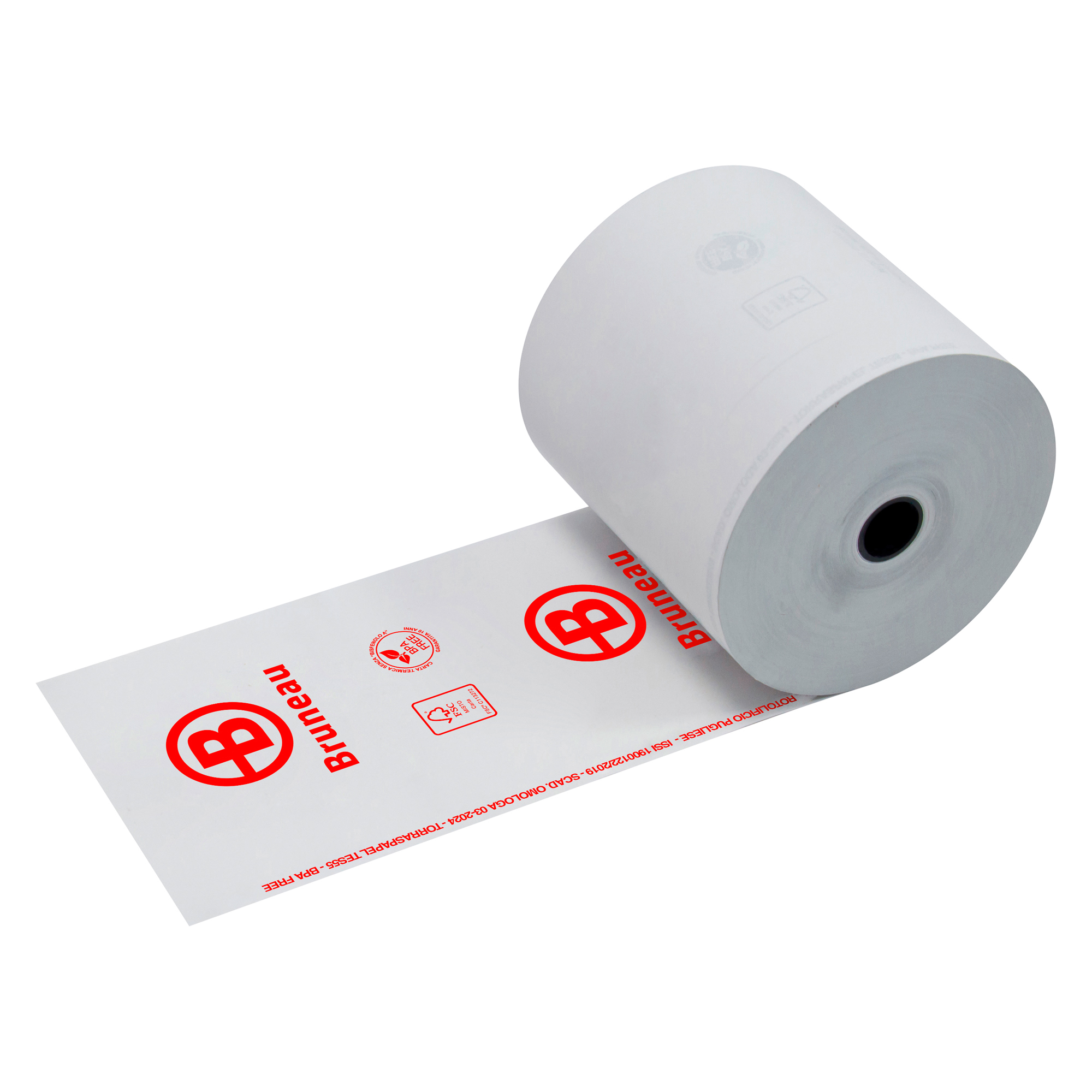 Carta in rotoli per registratori di cassa in carta termica omologati.